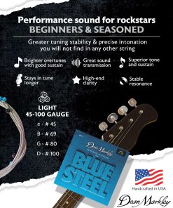 Cuerdas de Bajo Eléctrico Dean Markley 2672 Blue Steel Electric Long Scale 45-100 Calibre Ligero, Procesadas Criogénicamente para una Vida Más Larga, Rendimiento Superior de Tono y Estabilidad de Afinación
