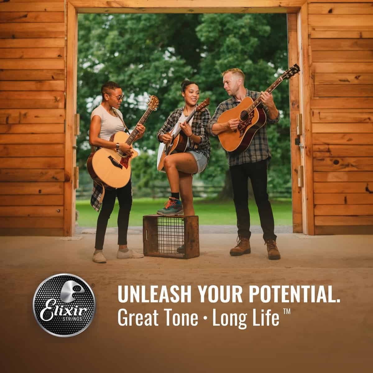 Las cuerdas acústicas Elixir Phosphor Bronze con recubrimiento NANOWEB ofrecen un distintivo calor y brillo de bronce fosforado junto con una vida útil prolongada del tono.