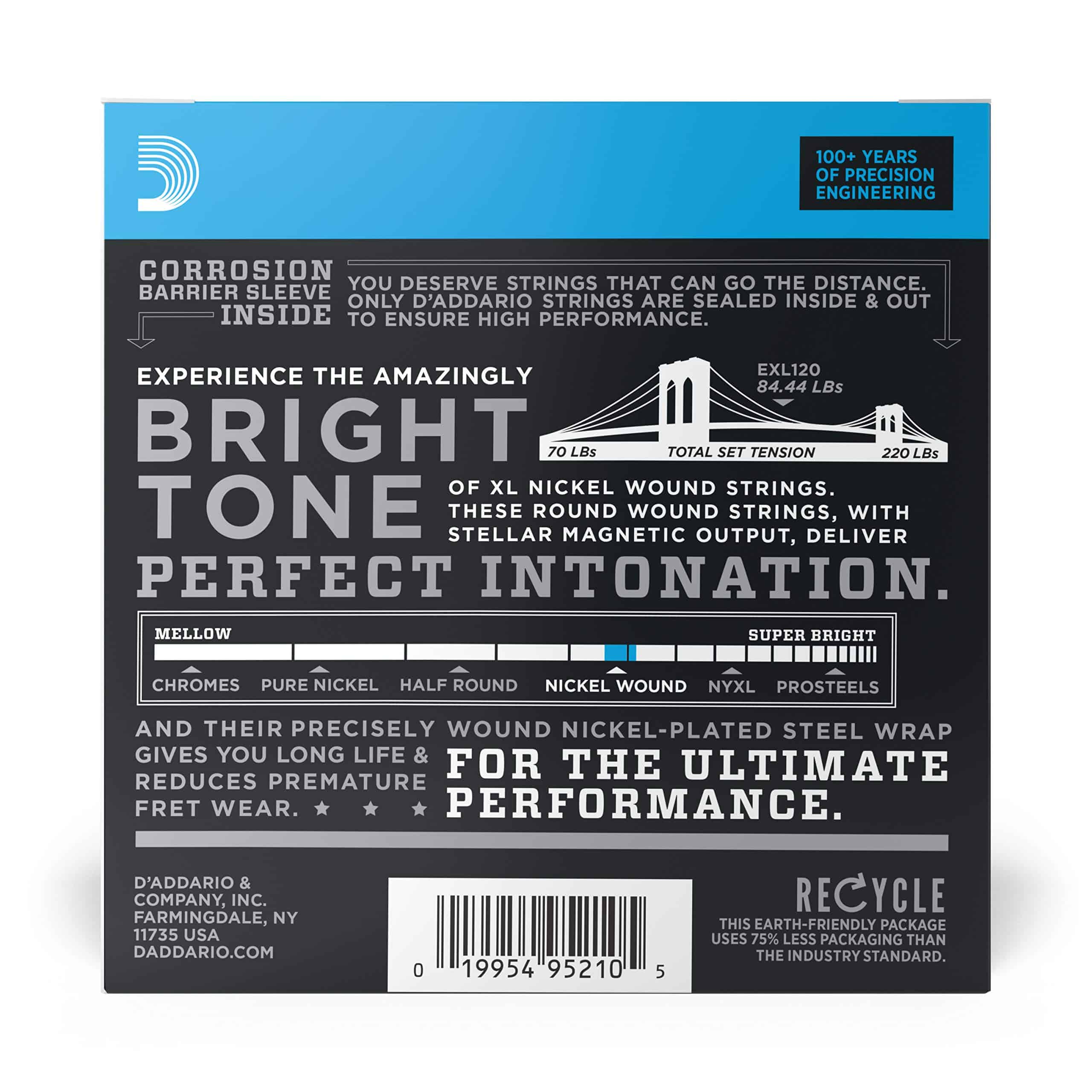 Las cuerdas de guitarra eléctrica XL Nickel Wound son el estándar contra el cual se miden todas las demás cuerdas. Nuestro set de guitarra eléctrica más vendido, XL Nickel ha sido venerado por músicos de todo el mundo desde 1974. Hechas con un núcleo de acero de alto carbono y alambre de envoltura de acero niquelado, las cuerdas XL Nickel tienen un tono brillante y versátil, ideal para una amplia variedad de estilos musicales. Las cuerdas de calibre 9-42 Super Light son fáciles de doblar y muy flexibles.