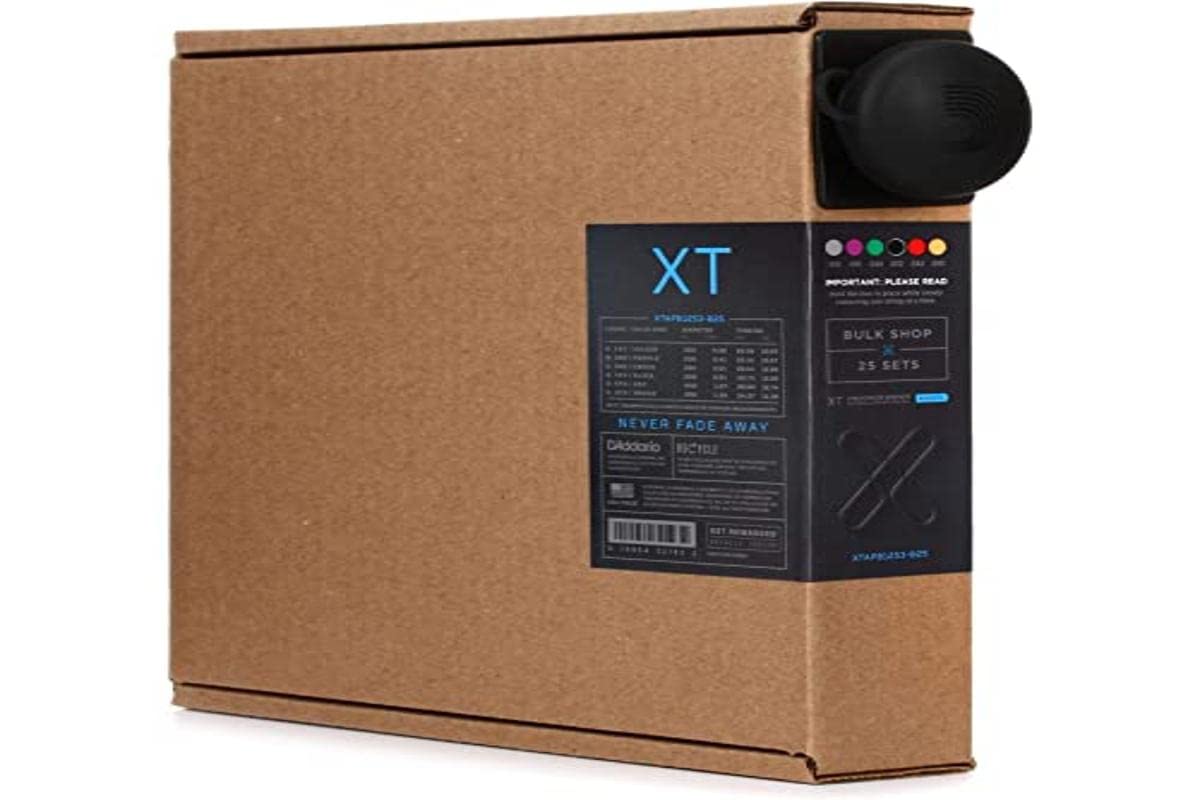 Desde que D’Addario introdujo las cuerdas de guitarra acústica Phosphor Bronze en 1974, han sido sinónimo de un tono cálido y equilibrado. XT Phosphor Bronze ofrece eso y más, presumiendo de una resistencia a la rotura mejorada, una mayor estabilidad de tono y una vida útil más larga que nuestras cuerdas de bronce fosforado estándar. El recubrimiento XT proporciona una resistencia a la corrosión avanzada, manteniendo aún el tono cálido y la sensación natural de la cuerda sin recubrir. Bajo el recubrimiento, estas cuerdas acústicas XT están construidas con un núcleo de acero NY, alambre recubierto de bronce fosforado y tecnología Fusion Twist, ofreciendo versatilidad tonal con mayor resistencia, excelente para una amplia gama de estilos acústicos. Este paquete a granel presenta 25 juegos de cuerdas de calibre ligero de 12-53, nuestro calibre acústico más popular, conocido por proporcionar un buen equilibrio entre facilidad de ejecución y tono. La caja especialmente diseñada para tiendas a granel está hecha con un tubo reutilizable, que permite a los músicos, lutieres y técnicos acceder a las cuerdas con facilidad, a la vez que preservan la vida útil de las cuerdas.
