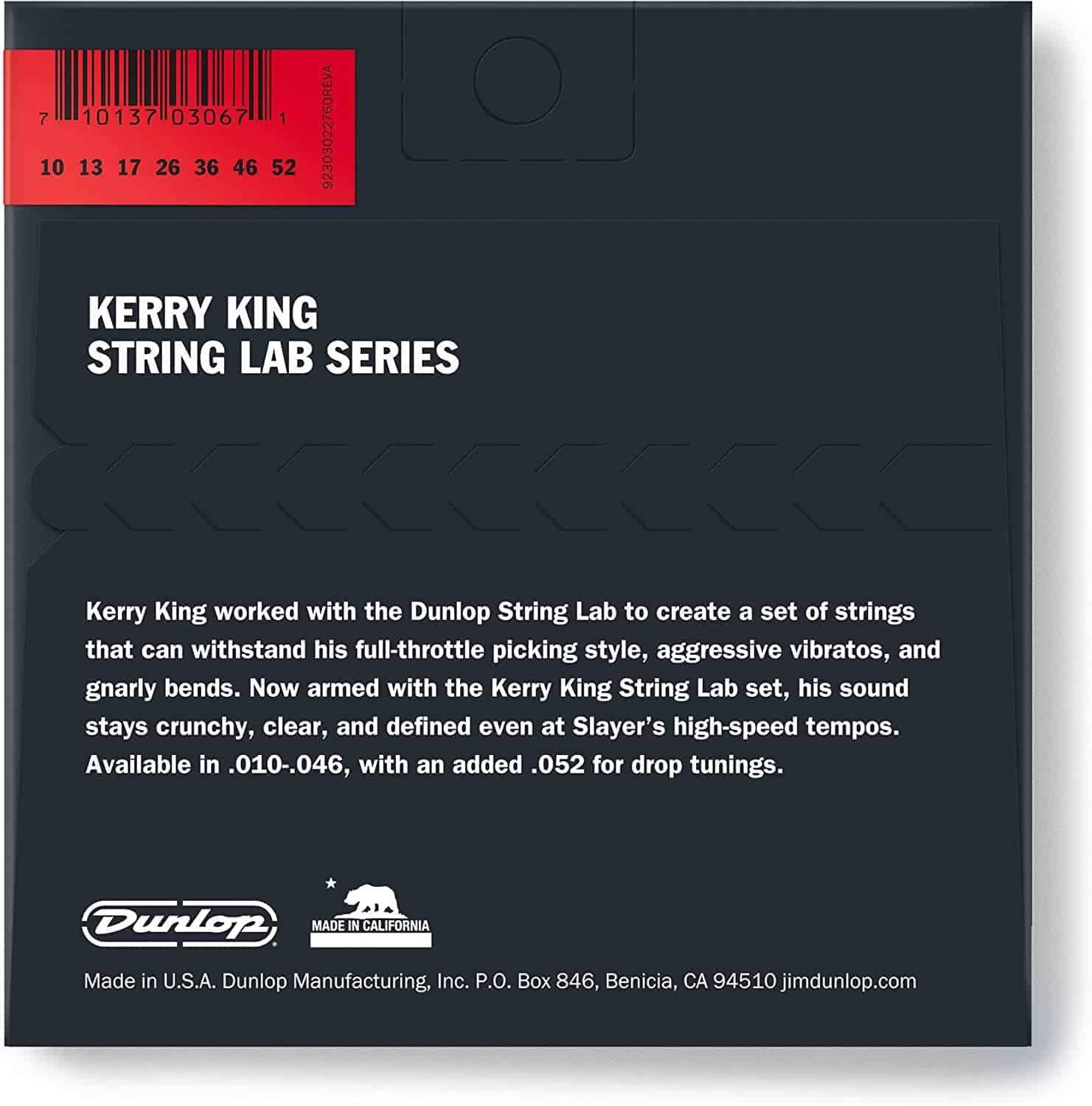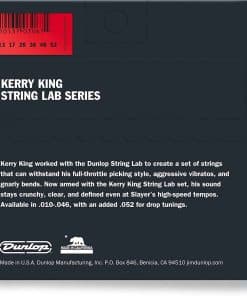 Kerry King trabajó con el Laboratorio de Cuerdas de Dunlop para crear un juego de cuerdas que pueda resistir su estilo de púa a toda velocidad, vibratos agresivos y dobleces intensos. Ahora armado con el juego de laboratorio de cuerdas de Kerry King, su sonido se mantiene crujiente, claro y definido incluso en los tempos de alta velocidad de Slayer. Disponible en .010-.046, con un añadido de .052 para afinaciones más bajas.