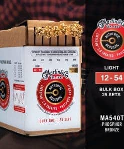 ¡Martin Authentic Acoustic Lifespan 2.0, ahora ofrecido en una caja a granel conveniente! La caja a granel contiene 25 sets y está empaquetada en un sistema fácil de usar diseñado para resistencia a la corrosión.