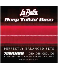 La Bella 760RHBB ‘Beatle’ Deep Talkin Bass es un conjunto de cuerdas de calidad excepcional diseñado para bajos Hofner Beatle y modelos similares. Cada cuerda está hecha a mano y calibrada para adaptarse a los tres tipos de puentes diferentes fabricados por Hofner. Con un entorchado redondo de acero inoxidable, estas cuerdas ofrecen un tono profundo y consistente. Los calibres de las cuerdas son .050, .065, .080, .100, ideales para músicos exigentes. Hechas en EE. UU. con alambre de alta calidad y empaquetadas utilizando tecnología MAP para garantizar su frescura y evitar el deterioro. Renueva el sonido de tu bajo con las cuerdas La Bella 760RHBB ‘Beatle’ Deep Talkin Bass.
