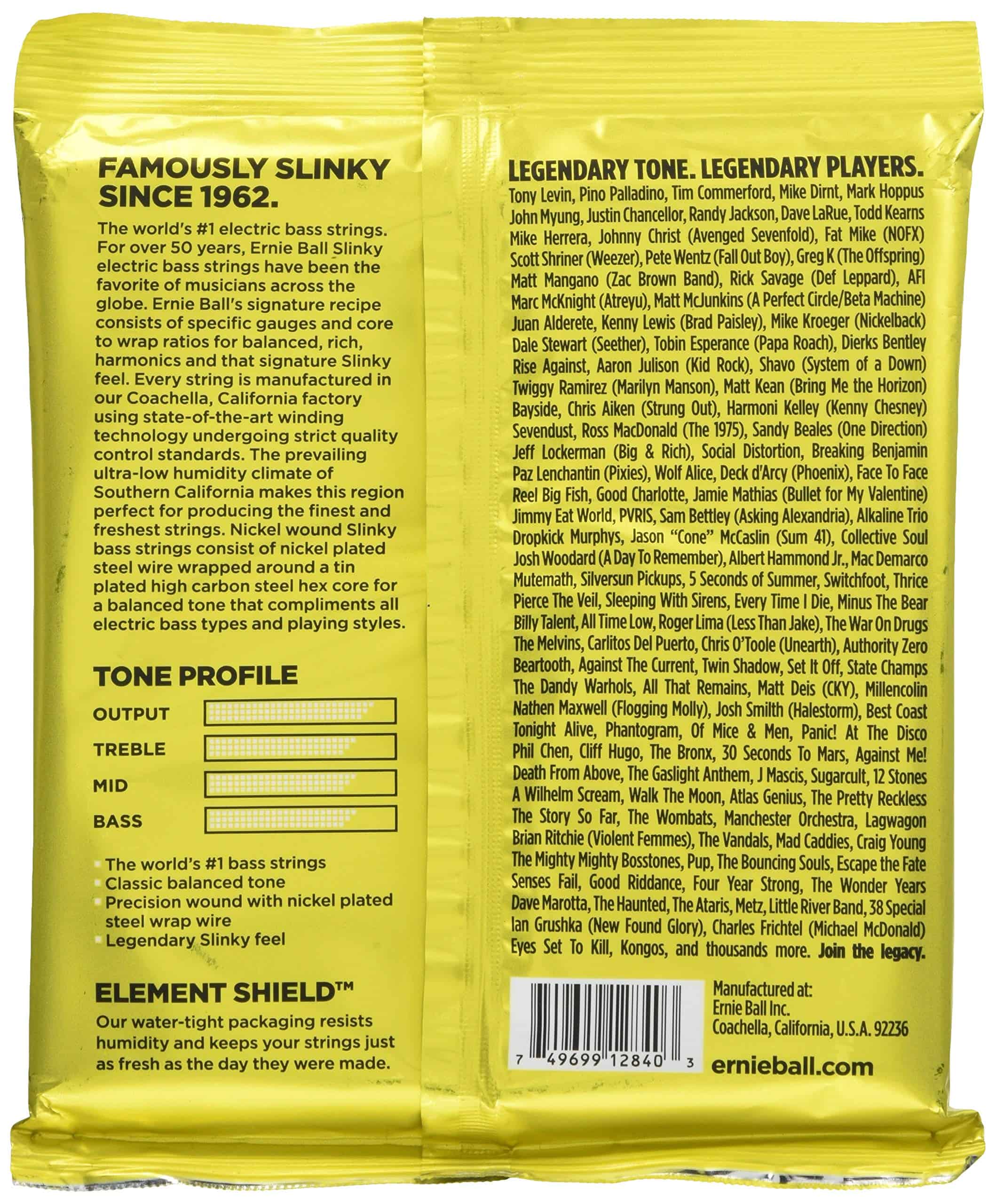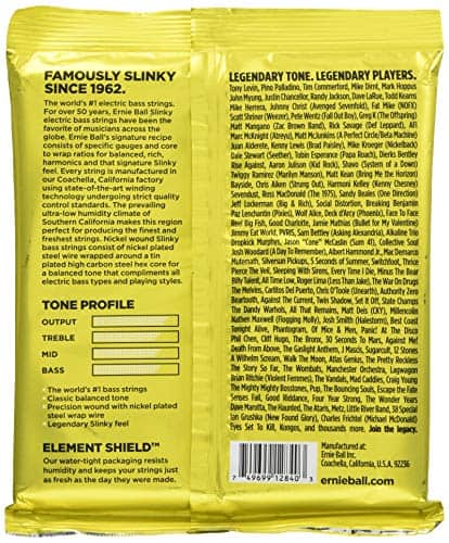 «Ernie Ball da la bienvenida a su nuevo juego de cuerdas de bajo a la famosa línea de cuerdas de bajo Slinky. Las cuerdas de bajo Beefy Slinky cuentan con el mismo gran tono brillante y equilibrado por el que son conocidas las Slinkys, en una combinación aún más pesada para los bajistas de 4 cuerdas. Este juego ha sido desarrollado específicamente para afinaciones ultra bajas, incluyendo BEAD, Drop B y Drop C. Las cuerdas de bajo Beefy Slinky son ideales para los músicos que prefieren un juego de cuerdas más pesado que entregue un potente extremo bajo con una tensión y definición óptimas. Número de parte P02840.»