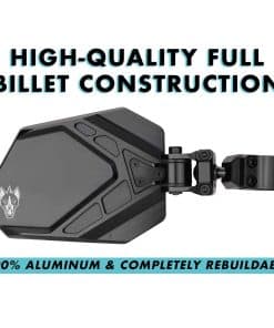 ¡Tomamos todo lo que a nuestros clientes les encantaba de nuestros populares espejos laterales Cuero y los mejoramos en todos los sentidos! El Cuero Pro ofrece un nuevo diseño elegante con una mayor área de visión, gracias a un espejo de vidrio convexo de mayor tamaño. Con un diseño modular mejorado que utiliza nuestro sistema de abrazadera patentado, estos espejos también despejan la mayoría de parabrisas y redes de ventanas. Nuestros Cuero Pros ofrecen un diseño ajustable y robusto que se integra con nuestro sistema de montaje para ejecutar una luz pod de tu elección. ¡Aprovecha el juego de espejos laterales de mayor valor de la industria, que solo se ha vuelto más elegante y diverso! Los nuevos espejos laterales Cuero Pro de CNC Billet superan ampliamente a la competencia, y ni siquiera se les acerca. Las luces Pod se venden por separado.