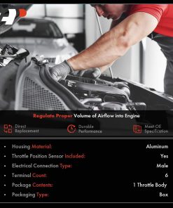 Cuerpos de Aceleración A-premium son una opción ideal para reemplazar tu Cuerpo de Aceleración roto. Todos los Cuerpos de Aceleración cumplen o superan las especificaciones OEM. Debido a los altos estándares de fabricación, vendrá con una garantía de un año de calidad. Compatible con Modelos Buick: LaCrosse 2012-2016 L4 2.4L Gasolina Regal 2012 L4 2.4L Flex Regal 2012-2017 L4 2.4L Gasolina Regal 2015-2017 L4 2.4L Flex Verano 2012-2017 L4 2.4L Flex Verano 2016-2017 L4 2.4L Gasolina. Compatible con Modelos Chevrolet: Captiva Sport 2012-2015 L4 2.4L Flex Equinox 2012-2017 L4 2.4L Flex Equinox 2012-2017 L4 2.4L Gasolina Impala 2014 L4 2.4L Gasolina Malibú 2013-2014 L4 2.4L Gasolina Orlando 2014 L4 2.4L Flex Orlando 2012-2013 L4 2.4L Gasolina. Compatible con Modelos GMC: Terrain 2012-2017 L4 2.4L Flex Terrain 2012-2017 L4 2.4L Gasolina Especificaciones: Color/Acabado: Plata Material de la carcasa: Aluminio Junta o sello incluido: No Motor de control de aire inactivo incluido: No Sensor de posición del acelerador incluido: Sí Número OEM: S20221, TB1295, 12670834, 12632101, 12669146 Cantidad vendida: Una pieza Nota: Se ajusta al modelo con L4 2.4L únicamente, con sensor TPS.