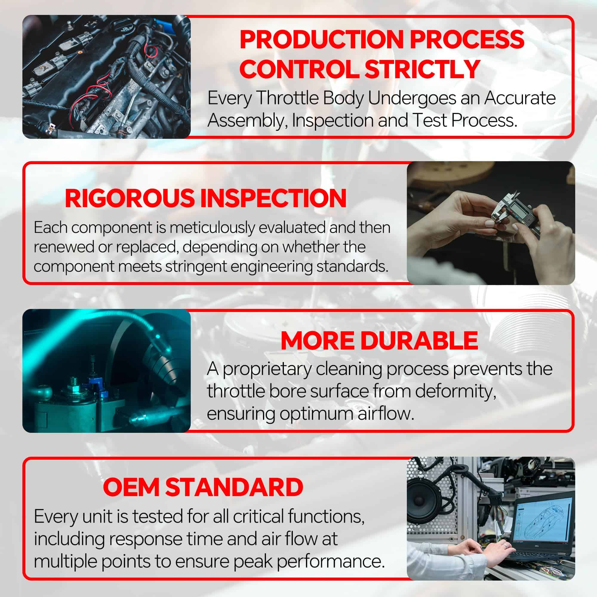 3. Control preciso: Regula la entrada de aire para una mezcla precisa de combustible y aire, lo que resulta en una mejora en la aceleración y eficiencia de combustible.