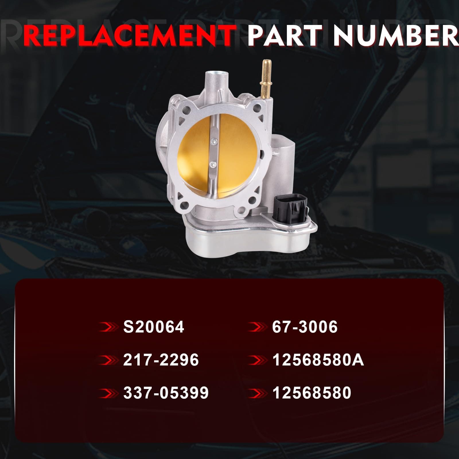 1. Reemplaza el número de pieza OEM El cuerpo del acelerador electrónico reemplaza a S20064 12568580 25312095 8125685800 S20007 2172296 217-2296 67-3006 977017 TB1022 TB1062.