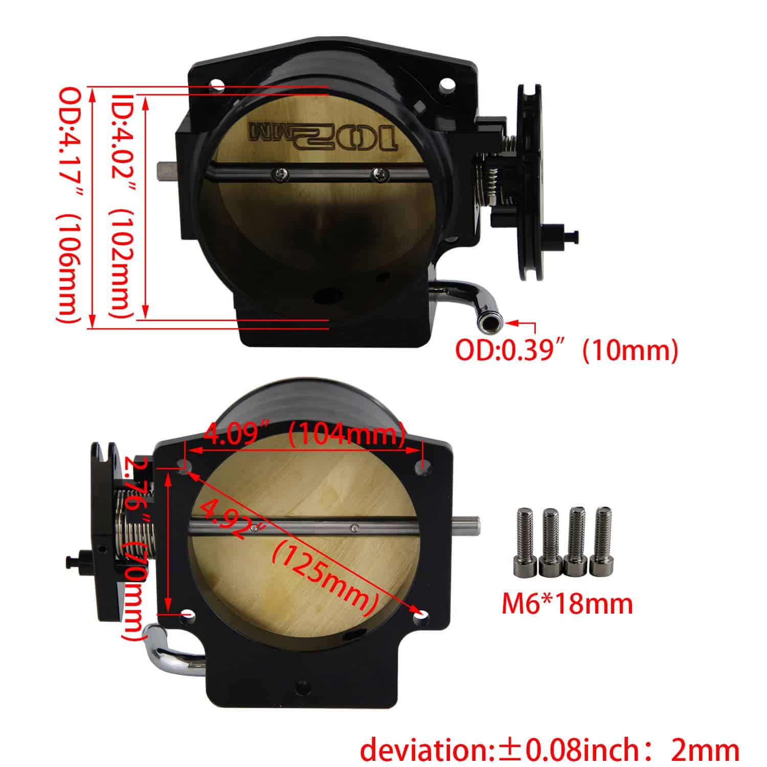 Título: Cuerpo del acelerador de 102MM+TPS IAC para Chevy GM Gen III LS1 LS2 LS3 LS6 LS7 SX LS LSX 4 pernos de cable Aplicación: Ajuste del motor: para LS Style 4 pernos de colector de admisión (por ejemplo, LS2, LS3, LS7, LSX) con accionamiento por cable Diseño de corredor corto Se adapta a un colector de admisión de mercado secundario que es más grande que el tamaño de stock Descripción: para el nuevo cuerpo del acelerador de 102 mm para GM III LS1 LS2 LS3 LS6 LS7 LSX (como en la imagen) Material: Aluminio CNC Cuerpo del acelerador electrónico nuevo de marca Este cuerpo del acelerador está fabricado y probado según los estándares OE más estrictos para un rendimiento incomparable. Construido para una propiedad sin problemas y 100% inspeccionado visualmente y probado en calidad Este cuerpo del acelerador está respaldado por nuestra garantía del 100%. 100% probado eléctricamente antes de salir de la fábrica Prueba de fábrica al 100% Pieza de calidad superior Parte de posventa profesional Se recomienda la instalación profesional ¡Todos los artículos son fabricados por nuestra propia fábrica (no originales), no somos responsables de las habilidades de instalación, así que asegúrese de entenderlo nuevamente antes de comprarlo Incluye: 1 x Cuerpo del acelerador de 102 mm 1 x Sensor de posición del acelerador (TPS) 1 x Control de aire en ralentí (IAC) 4 x Pernos