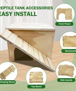 Accesorios de Tanque de Reptiles La cueva de madera para reptiles tiene una apariencia simple y elegante, y como accesorios para tanques de gecko leopardo, aumenta considerablemente el valor ornamental del terrario. Cueva de Escondite de Madera para Reptiles – ¡La adición perfecta para tu Caja de Cría de Gecko Leopardo! Una cueva de escondite adecuada le dará a tu cangrejo ermitaño un área para dormir y también esconderse. El diseño resistente no se volcará y no se romperá tan fácilmente como el material de resina. Adecuado para su uso en una variedad de terrarios de reptiles. Juguete de Escalada para Cangrejo Ermitaño Adecuado para reptiles, geckos, tortugas, camaleones, hámsters, cobayas Material: Madera Tamaño: 9.1″L 7.8″W 7.1″H