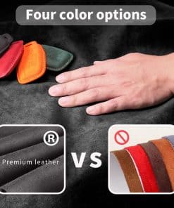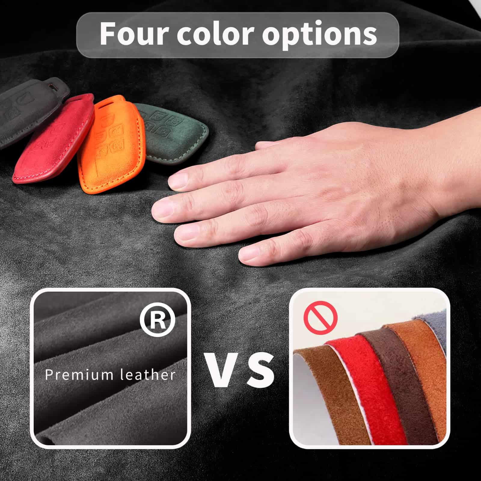 Esta es una cubierta de llavero de piel auténtica, también conocida como cubierta de llavero de gamuza, se siente genial, muy ligera y texturizada. Sensación diferente a otras cubiertas de llaves