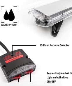 Especificaciones: Condición: 100% Nuevo Paquete incluye: + 1 X 88 LED Luz Estroboscópica con Interruptor de Encendido/Apagado + Un par de Soportes de Montaje + Juego de Tornillos de Montaje Tamaño: Longitud: aprox. 47″ (118cm) – Ancho: 8 17/64″(21cm) – Altura: 1 3/8″ (3.5cm) Longitud del cable: aprox. 10 pies Color de la carcasa: Ámbar Voltaje: CC 12V – 24V Corriente: 7.4A Lumen: 100 – 110 lm/LED Potencia de trabajo: 88W (1W/LED) Número de LED: 88 Tasa IP: IP 65 Material: Carcasa de ABS de alta calidad + LED + Soporte de Montaje de Aluminio (Fácil de colocar en el techo) Peso: 18 libras Característica: Nuestras luces están garantizadas como las de mayor calidad. Luz estroboscópica/ Faro/ Luz de advertencia/ Barra de luz para transporte y construcción Recuerdo de último patrón. Ideal para trabajadores de emergencias, Servicio Postal, vehículos de construcción, seguridad, quitanieves, etc. Cada unidad consta de 88 LED de alta intensidad en total. 13 modos de destello con botón de interruptor y fusible incorporado LED de alta calidad con más de 50,000 horas de vida útil Compatibilidad: Universal para vehículos de CC 12V – 24V con montaje en techo. Extrema Alta Intensidad, en la parte superior, cumplimiento de la ley
