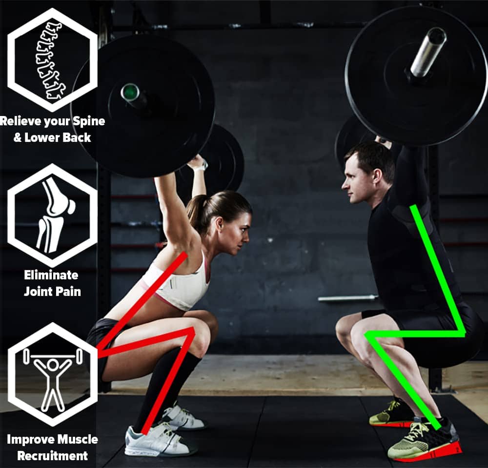 Usar nuestras cuñas para sentadillas suavizará tu forma y creará una extraordinaria sensación natural en las sentadillas. Dependiendo de tu movilidad actual (o la falta de ella), puedes elevar tu talón hasta 2 pulgadas para ayudar a pasar por alto la mala movilidad y flexibilidad permitiendo un rango completo de movimiento (conexión pantorrilla-rodilla). Las cuñas independientes dan la opción de rotar la posición de la disposición de las cuñas para que coincida con el ángulo ideal de los pies de tu cuerpo (recto o hacia afuera). Esta alineación permite que las caderas se abran y dirijan las rodillas con los pies para reducir el riesgo de lesiones.