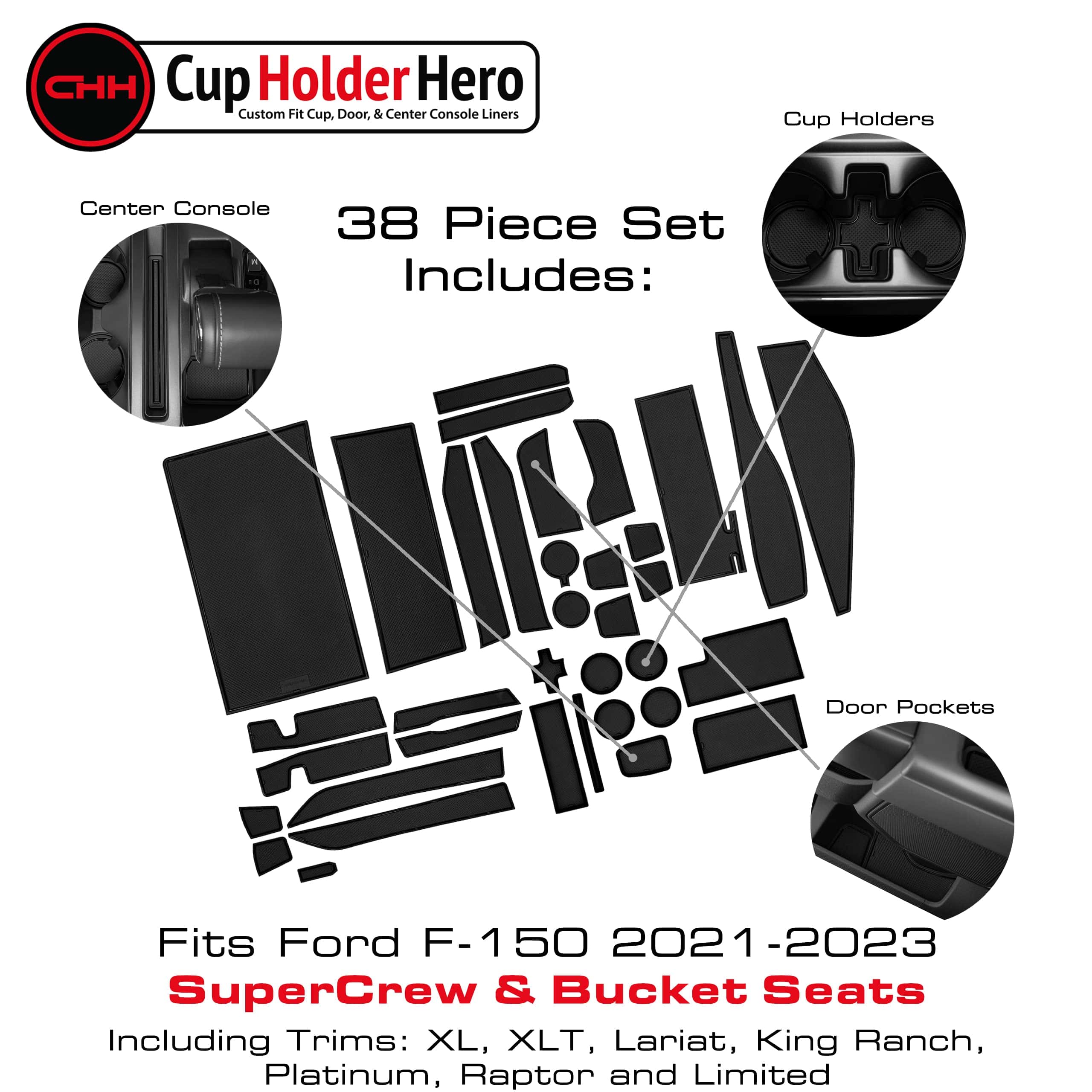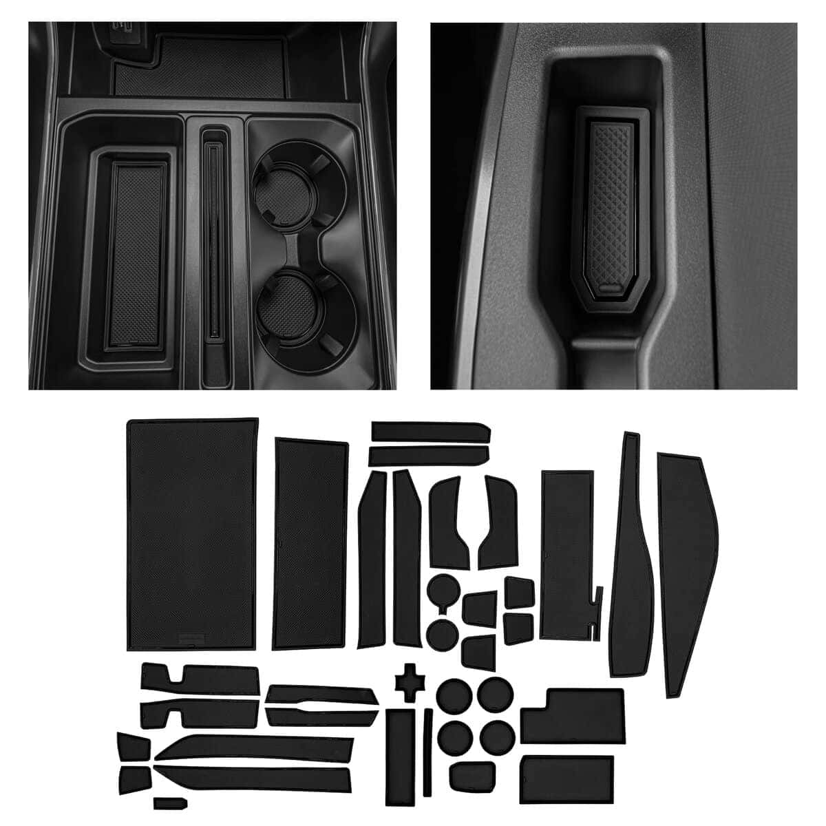 2. TU INTERIOR ESTÁ PROTEGIDO: Las alfombrillas y posavasos no son suficientes para proteger contra la suciedad atraída en los posavasos de automóviles, almacenamiento de bolsillos de puertas. Tu nuevo juego de 38 piezas de tapetes antideslizantes protege tu bandeja de consola central, bolsillos de puertas y portavasos y mantiene tu vehículo impecable. (Se ajusta a los modelos Ford F150 2021, 2022 y 2023, incluidos los niveles de acabado: XL, XLT, Lariat, Limited, King Ranch, Platinum, Raptor y Tremor).