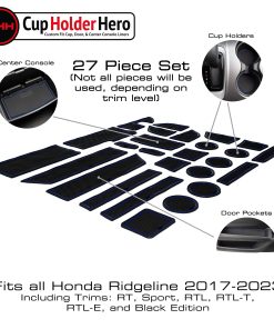 2. TU INTERIOR ESTÁ PROTEGIDO – Los tapetes para piso, posavasos y cubiertas de asientos no son suficientes para proteger contra todo el sucio atraído en los portavasos de automóviles, almacenamiento en el bolsillo de la puerta y áreas del coche de la consola central. Tu nuevo set de 24 piezas de tapetes antideslizantes protege tu bandeja de la consola central, bolsillos de puertas, y portavasos y mantiene tu vehículo luciendo genial. (Compatible con todos los modelos de Honda Ridgeline 2017, 2018, 2019, 2020, 2021, 2022, 2023 incluyendo niveles de acabado: T, Sport, RTL, RTL-T, RTL-E y Black Edition).