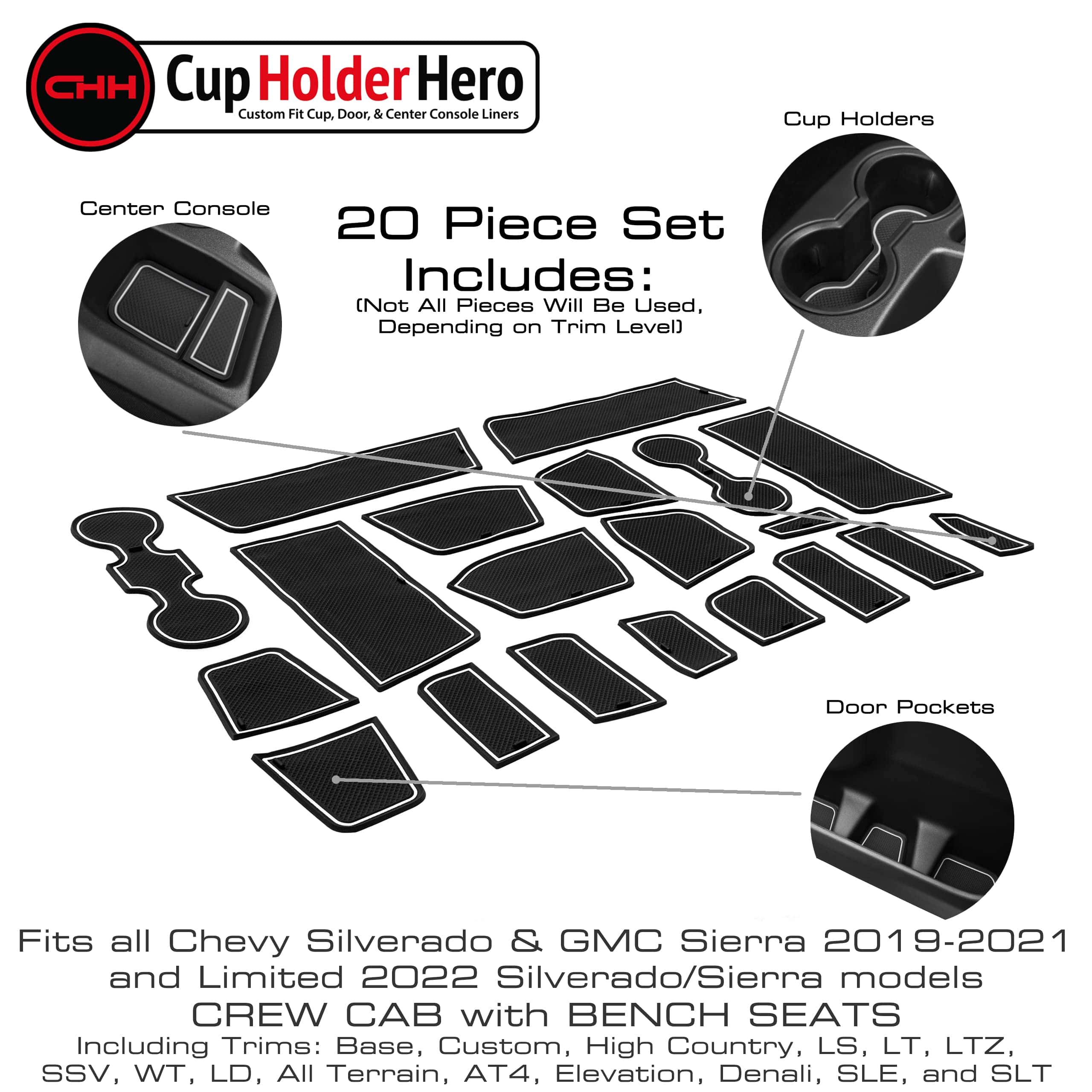 4. Rescata tu interior con CupHolderHero: Qué alivio saber que tus bebidas y artículos cotidianos permanecen seguros donde deseas, sin traquetear ni deslizarse y tu nuevo accesorio para consola seguramente durará toda la vida de tu preciado vehículo, o haremos lo correcto con un reembolso o reemplazo. Disfruta de cada viaje con modificaciones excepcionales que se adaptan a Chevy Silverado y se adaptan a GMC Sierra que mantienen tu espacio limpio, atractivo y completamente fácil de usar. ¡Estos conjuntos personalizados hacen regalos fantásticos!