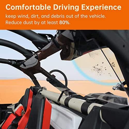 El parabrisas trasero CUSAUTV es la solución perfecta para mantener el viento, la suciedad y los escombros fuera de tu Can Am Maverick X3 o X3 Max. Hecho de policarbonato de 1/4″ con inyección moldeada, este parabrisas es extremadamente duradero y resistente a los arañazos, garantizando una alta resistencia y una fuerte resistencia al impacto. Con este parabrisas, puedes reducir el polvo en al menos un 80%, mientras que también reduce eficazmente el flujo de aire y el ruido causado por el parabrisas delantero, brindándote a ti y a tus pasajeros una experiencia de conducción tranquila y cómoda. La instalación es fácil y rápida, sin necesidad de perforación o modificación. Simplemente utiliza la cinta de fijación rápida incluida. ¡Mejora tu experiencia de conducción con el parabrisas trasero CUSAUTV!