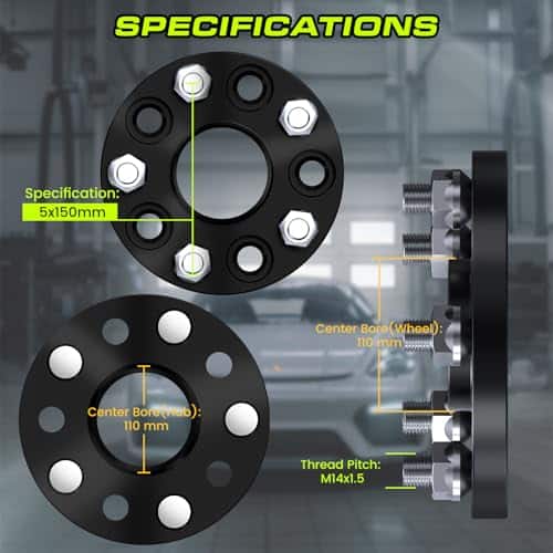Nuestros separadores de rueda mejoran el manejo, la apariencia y la corrección del offset, mejorando la estabilidad, tracción y estilo general. Los separadores de rueda de Customadeonly están hechos con aluminio 6061 T-6, un material conocido por su alta resistencia a la tracción y durabilidad. Los separadores están ensamblados con pernos de acero al carbono clase 10.9 (grado 8 SAE) tratados térmicamente. Los separadores de rueda Customadeonly también cuentan con nuestra garantía de producto de 2 años contra cualquier defecto funcional. Compatible con Land Cruiser 1998-2021, Sequoia 2008-2022, Tundra 2007-2021, LX470 1998-2007, LX570 2008-2021.