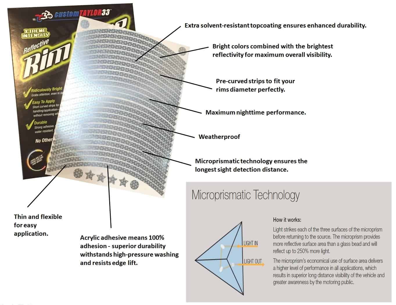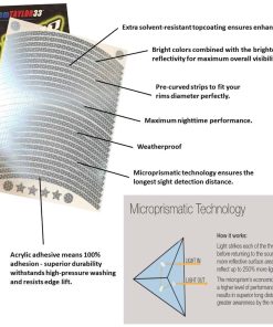 1. Estas tiras curvadas están diseñadas para aplicarse en las llantas de sus ruedas. Nos esforzamos por producir las cintas reflectantes de seguridad de la más alta calidad, más duraderas y más reflectantes del mundo.