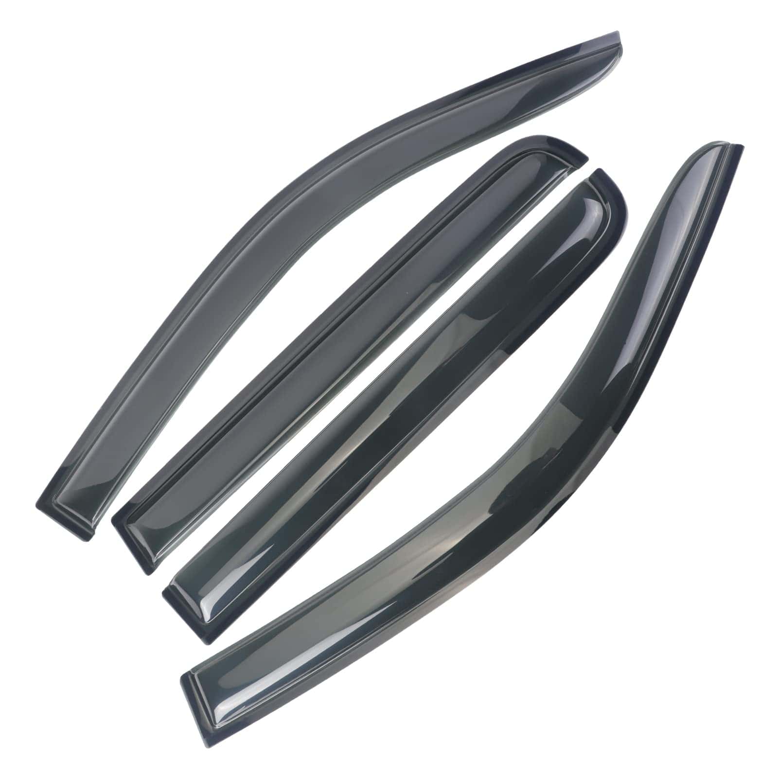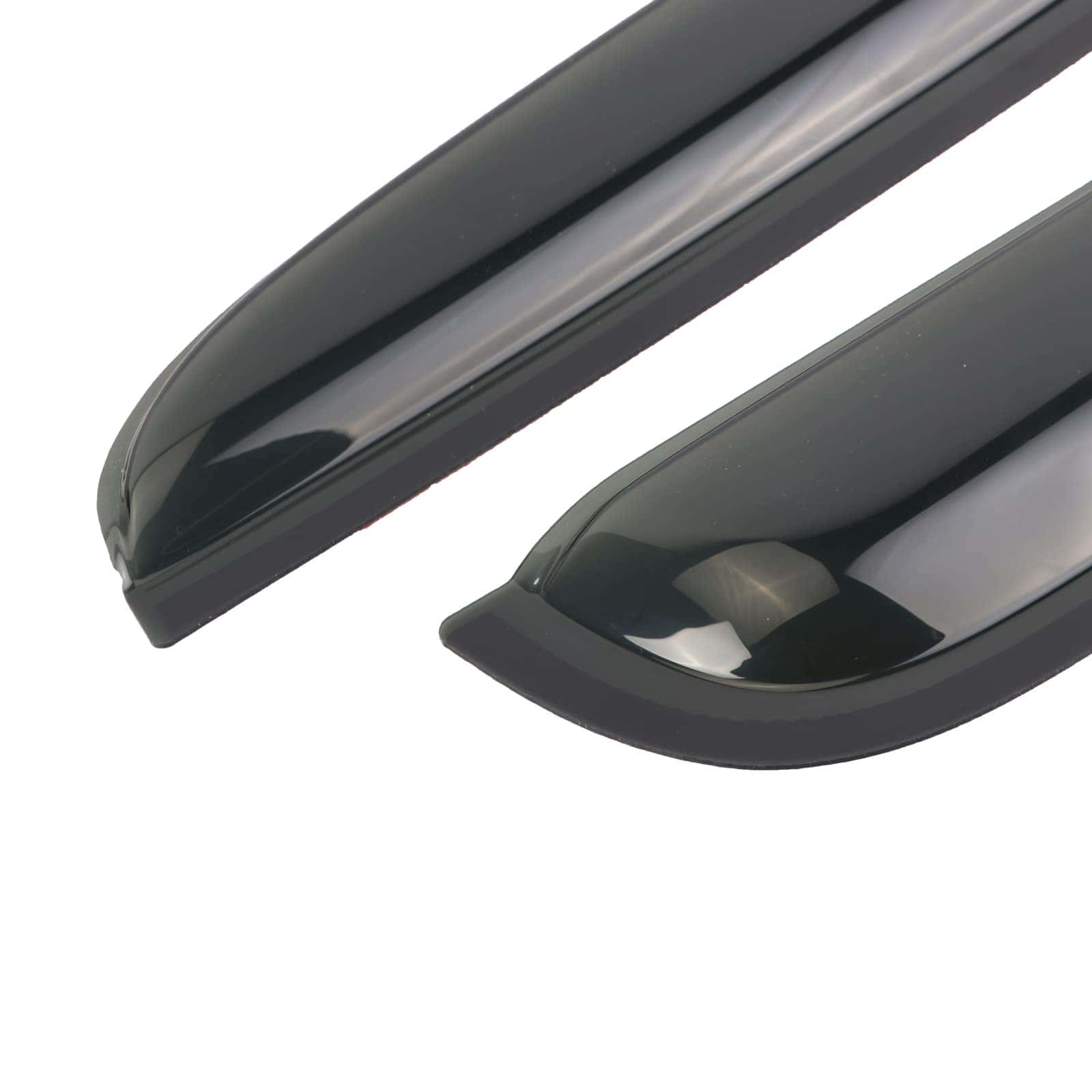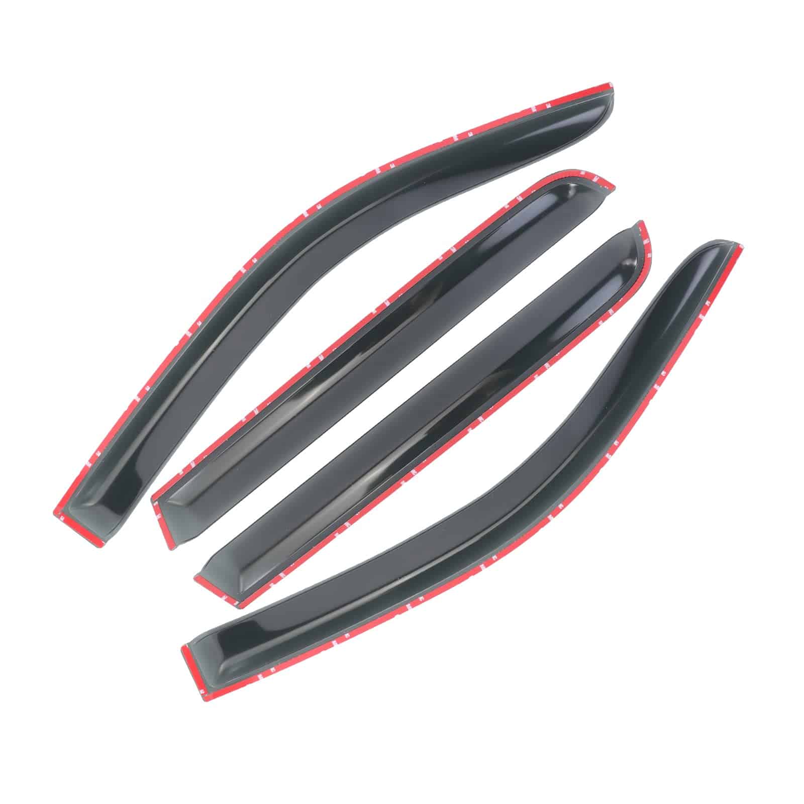 Ajuste: Nissan Frontier Crew Cab 2005-2021. Ventanas completamente protegidas del sol, el viento, la lluvia y la nieve. Ayudan a reducir la acumulación de calor en los vehículos estacionados al permitir la entrada de aire cuando están parcialmente abiertas. Material de larga duración diseñado para resistir las inclemencias climáticas. Permite dejar las ventanas abajo unas pulgadas para obtener aire fresco incluso en días lluviosos. Viene con cintas de doble cara de grado automotriz 3M para una instalación sencilla. Mejora drásticamente el estilo y la apariencia del vehículo.