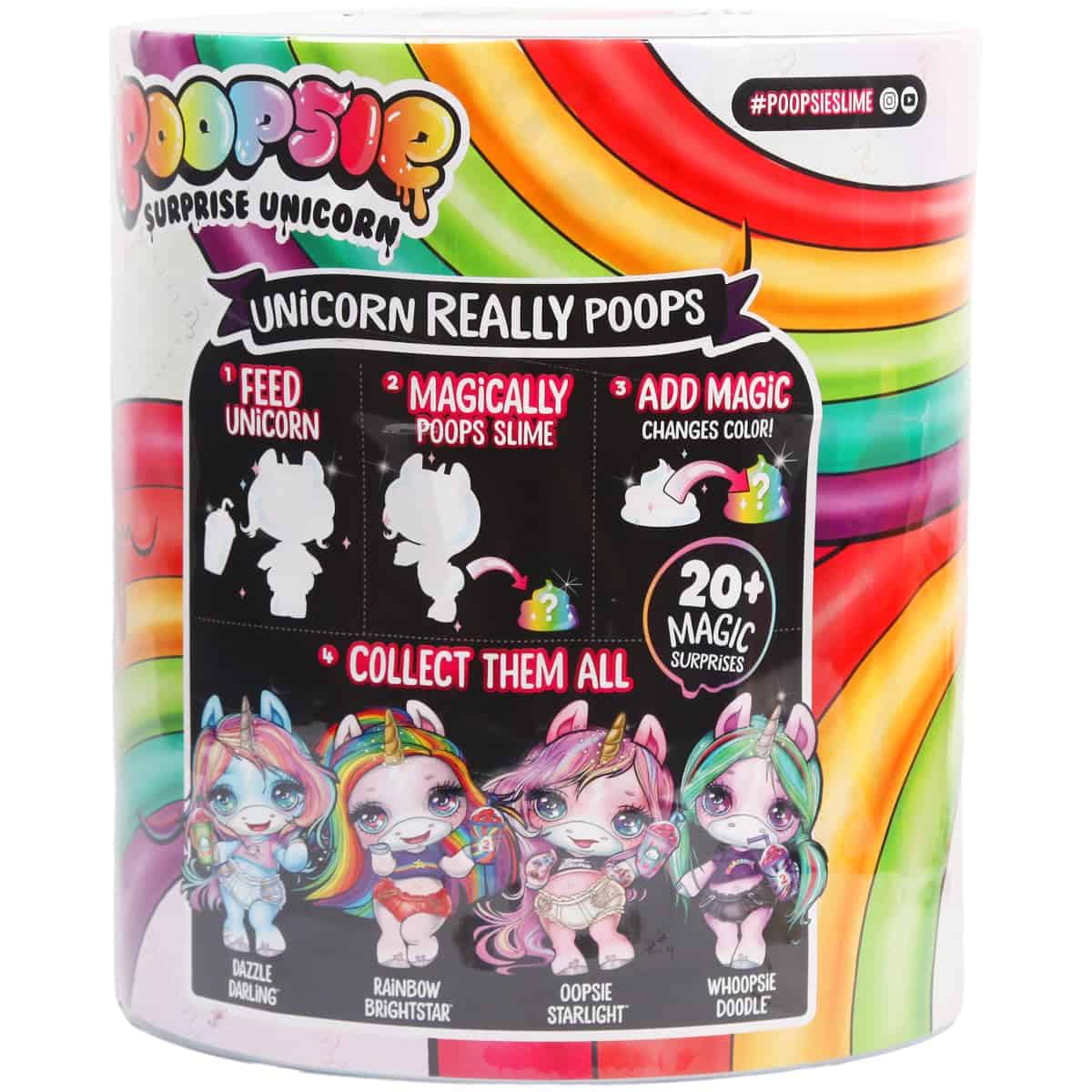 Cute Slime Surprise Unicorn: Dazzle Darling o Whoopsie Doodle es una divertida y mágica sorpresa para los amantes de los unicornios. Este set incluye un unicornio sorpresa (Bright Star arcoíris u oops Starlight) junto con un baño de brillo, paquetes de comida y magia de unicornio, una botella exclusiva, un llavero de personaje de caca, una camiseta y pañal de unicornio, accesorios para cuidar al unicornio y mucho más. ¡Deja que la magia de los unicornios entre en tu vida con Cute Slime Surprise Unicorn!