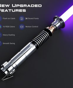 Pixelversion Light Saber Control de movimiento: le permite encender o apagar la cuchilla empujando y tirando, retorciendo o balanceando. 34 juegos de fuentes de sonido, 16 colores que se pueden cambiar; elija su color y efectos de sonido favoritos para duelo.