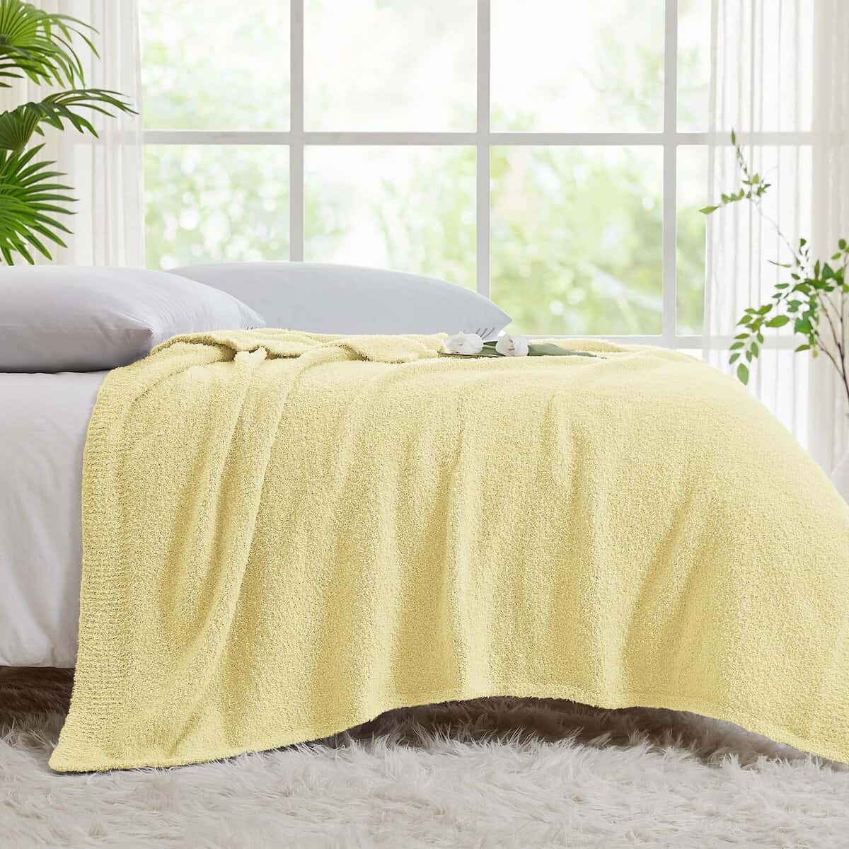 CYMULA Manta de Punto para Sofá Amarilla – Suave y Ligera
