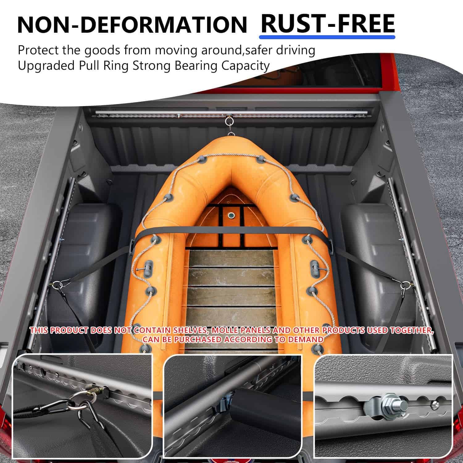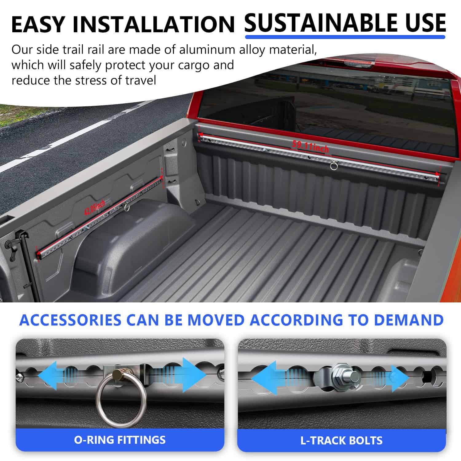 4. Detalles de Instalación: No es difícil instalar el sistema de amarre compatible con el riel Chevy Silverado 2019-2025. Todo el proceso es fácil. Solo te llevará unos minutos disfrutar de los beneficios que nuestro producto te brinda. Puede consultar las instrucciones de instalación en la página de inicio del producto o los pasos de instalación en el manual para la instalación.