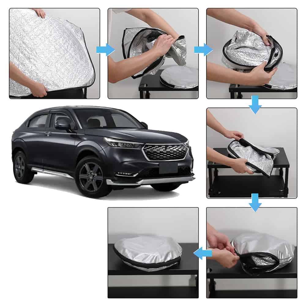 D-Lumina HRV Protector Solar de Parabrisas es el accesorio perfecto para su Honda HR-V 2023, 2024 o 2025. Este protector solar de alta calidad está diseñado específicamente para adaptarse a la forma y tamaño del parabrisas de su automóvil, garantizando un ajuste perfecto sin dejar espacios. Fabricado con material de 240T, que es más duradero y grueso que el material estándar de 210T, este protector solar está compuesto por dos capas reflectantes dobles y tres capas de aislamiento térmico para garantizar una protección eficaz contra los rayos solares y el calor. El uso de este protector solar no solo mantendrá su vehículo fresco y protegido, sino que también ayudará a que su aire acondicionado funcione de manera más rápida y eficiente, lo que le permitirá ahorrar dinero en combustible. Fácil de instalar y almacenar, este protector solar es la solución perfecta para mantener su automóvil fresco y protegido, especialmente en los días calurosos de verano. No se conforme con imitaciones baratas, elija D-Lumina para una protección y calidad superiores.