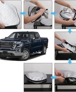 Parasol para parabrisas D-Lumina – Compatible con GMC Sierra 1500 2500 3500 2019 2020 2021 2022 2023 2024 2025 – Material 3 Capas 240T Actualizado, Protector Plegable para Ventana Delantera. Específico para Vehículos: Parasol para Sierra compatible con GMC Sierra 1500 2500 3500 2019 2020 2021 2022 2023 2024 2025 (SLT, AT4, Denali) pickup. Cubre por completo tu parabrisas frontal, sin espacios, ajuste perfecto. Se adapta perfectamente al diseño del parabrisas frontal del automóvil – diseñado en EE. UU. Asegúrate de conocer el modelo y año de tu automóvil antes de comprar. Material de 3 Capas Actualizado: El parasol para Sierra está hecho de papel de aluminio PEVA, algodón en spray y tela de poliéster reflectante 240T (más duradero y grueso que el material 210T), nuestro parasol está compuesto por dos capas reflectantes y 3 capas de aislamiento térmico que hacen que el sombreado y el aislamiento sean más efectivos, mantiene tu vehículo fresco y protege contra los daños causados por la luz solar. El Aire Acondicionado Funciona más Rápido y Fácil: Utiliza menos energía y gas en lugar de tener que esperar 15 minutos para que el aire acondicionado enfríe tu automóvil, el aire acondicionado se enfría más rápido y de manera más fácil. Ahorra dinero mientras haces que tu viaje sea mucho más cómodo y agradable. Fácil de instalar y guardar: con un ajuste preciso, solo necesitas alinear e instalar, estable y sin desplazamientos. El parasol para parabrisas de Sierra es fácil de guardar debido a su fuerte elasticidad y capacidad de plegado. Gran Protección: Con este parasol para parabrisas frontal, el parasol para ventanas de Sierra puede proteger el interior del automóvil de los rayos UV perjudiciales y del calor que desvanecerá el tablero y los asientos. Además, cuando viajas en automóvil o necesitas una siesta, los parasoles para parabrisas personalizados pueden bloquear el 99% de la luz solar y los rayos UV, brindándote a ti y a tu familia una mayor protección. Acerca de Nosotros: Nos hemos comprometido a mejorar continuamente la calidad de los productos e innovar en la practicidad de los productos automotrices. Si tienes alguna pregunta sobre el artículo durante la entrega o si se confirma un defecto de fabricación, avísanos, resolveremos los problemas lo antes posible.