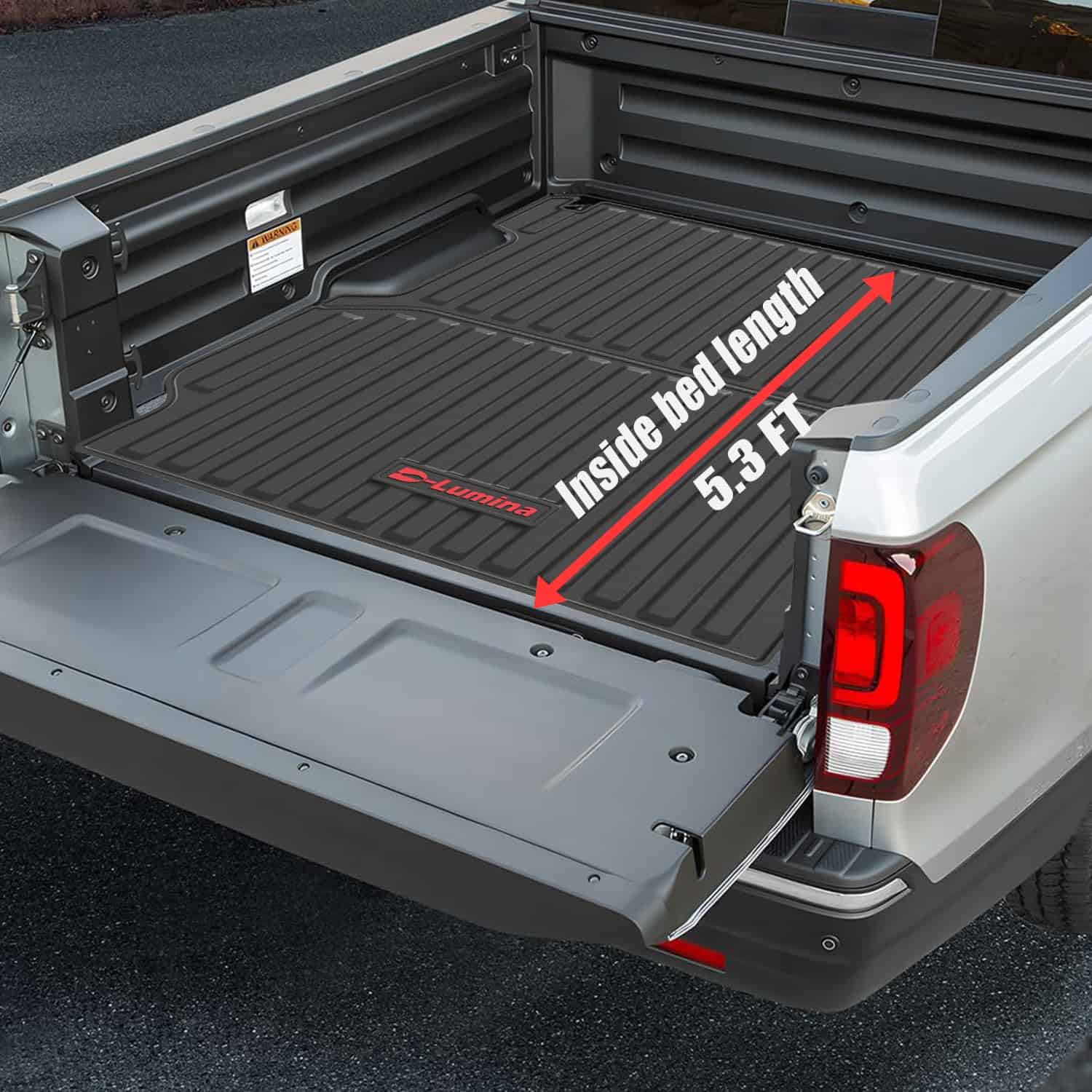Protector de Cama D-Lumina compatible con Honda Ridgeline 2017-2024 con camas de 5.3 pies. Este forro de cama de camión está diseñado para adaptarse perfectamente al diseño del piso del camión Ridgeline, brindando una protección óptima contra arañazos, suciedad y desgaste. Fabricado con material 3D TPV de alta calidad, este protector de cama es resistente al agua y duradero, lo que protege su camión de condiciones climáticas extremas y temperaturas variadas. La bandeja de protección ayuda a mantener la carga en su lugar, evitando que se deslice y cause daños a su camión. Además, es fácil de limpiar, lo que hace que mantener su camión ordenado sea una tarea sencilla. Con una garantía de 1 año en caso de daños durante la entrega o defectos de fabricación, puede confiar en la calidad y durabilidad de este protector de cama para su camión Ridgeline.