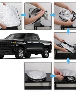 1. Específico para Vehículos: Protector solar para Silverado compatible con Chevy (Chevrolet) Silverado 1500 2019 2020 2021 2022 2023 2024 2025 (cabina regular, cabina de tripulación, doble cabina de 2 puertas 4 puertas). Cubre completamente el parabrisas delantero, sin huecos, ajuste perfecto. Se ajusta perfectamente al diseño del parabrisas del automóvil – diseñado en USA. Asegúrate de conocer el modelo y el año de tu coche antes de comprar.