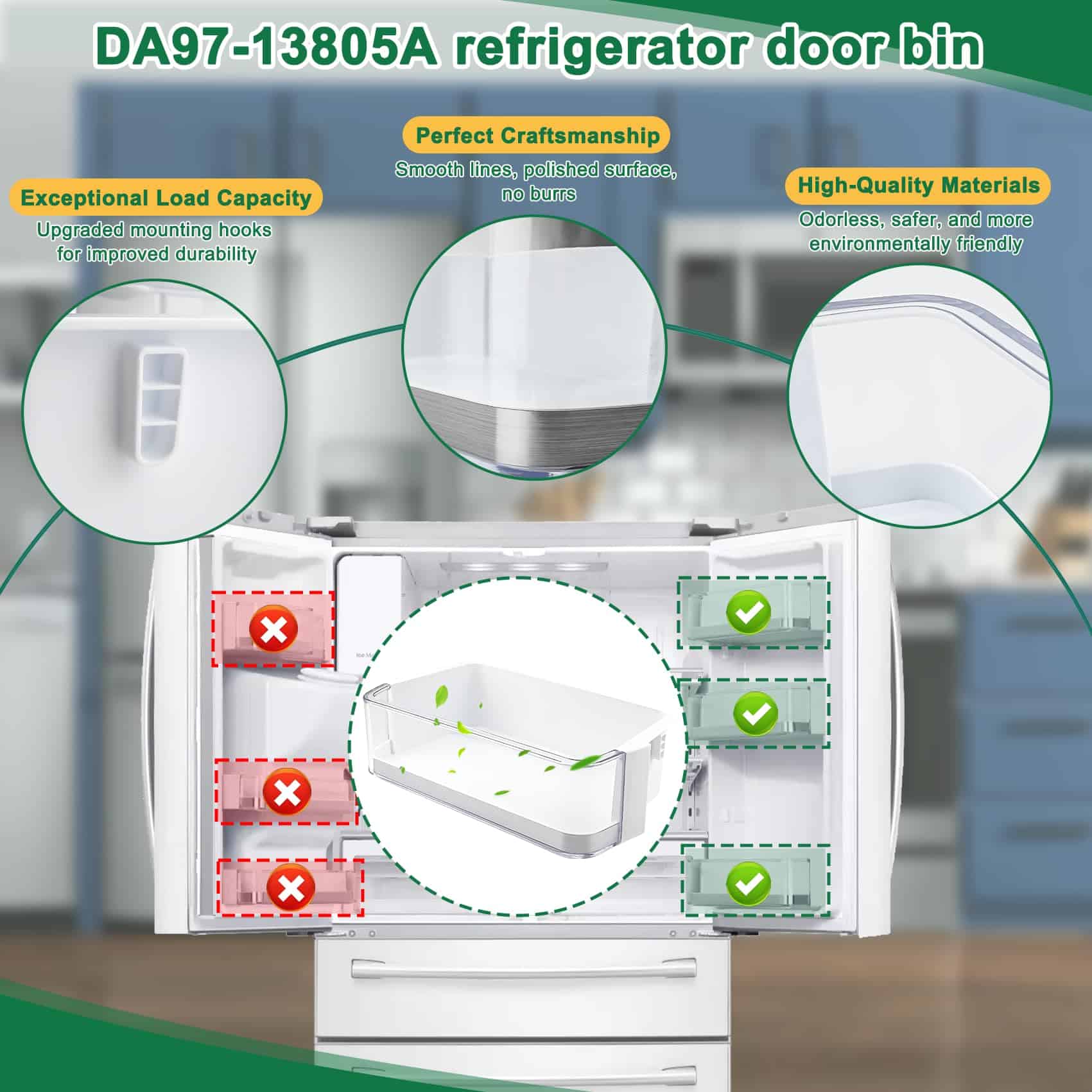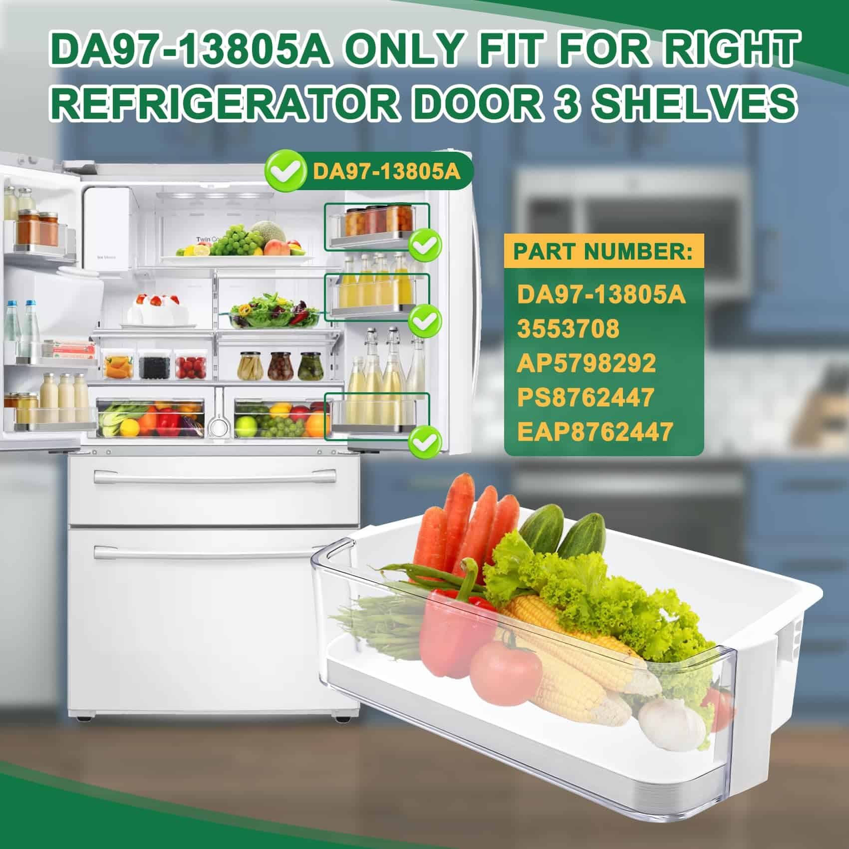 La instalación de la bandeja de puerta DA97-13805A es sencilla y rápida, sin necesidad de herramientas especializadas. Simplemente retire la bandeja vieja y reemplácela con la nueva, asegurándose de que encaje correctamente.
