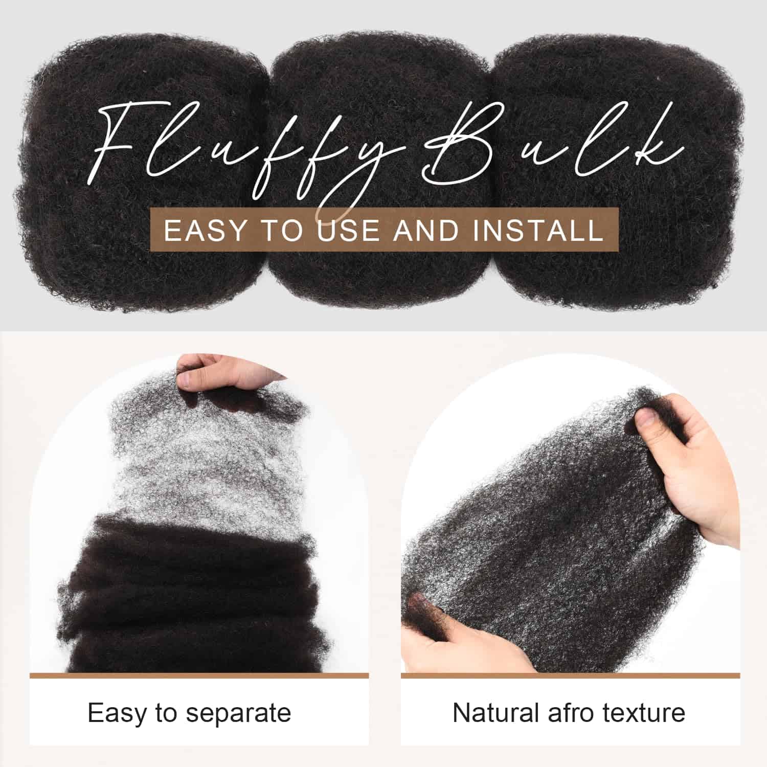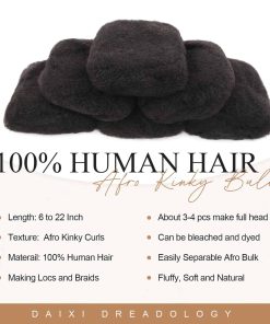 DAIXI 50 Gram Afro Kinkys Bulk Pelo Humano, Rizado Rizado y