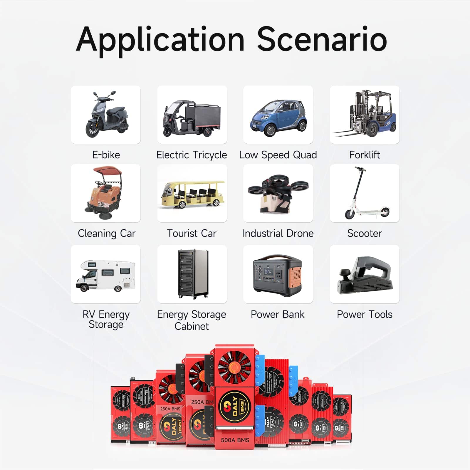 1. DALY BMS Protección contra sobrecorriente, sobrecarga, sobre descarga, cortocircuito, protección de temperatura. DALY BMS maximiza y optimiza el rendimiento de la batería de litio, y extiende la vida útil de la batería en gran medida.