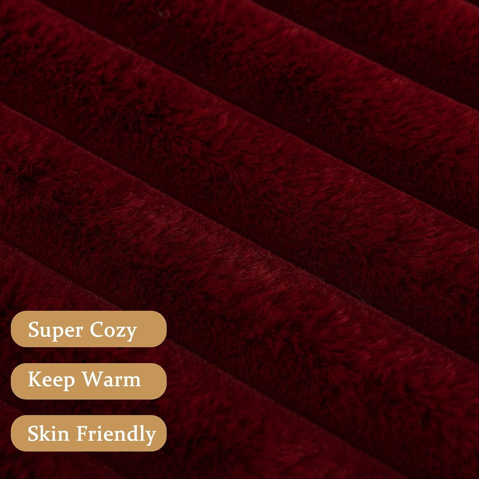1. Material: Hecho con cara de suave piel de conejo falso y seda aterciopelada en el interior, esta manta de rayas es suave y acogedora en ambos lados. Experimenta comodidad y calidez en días fríos con nuestra manta de sofá.