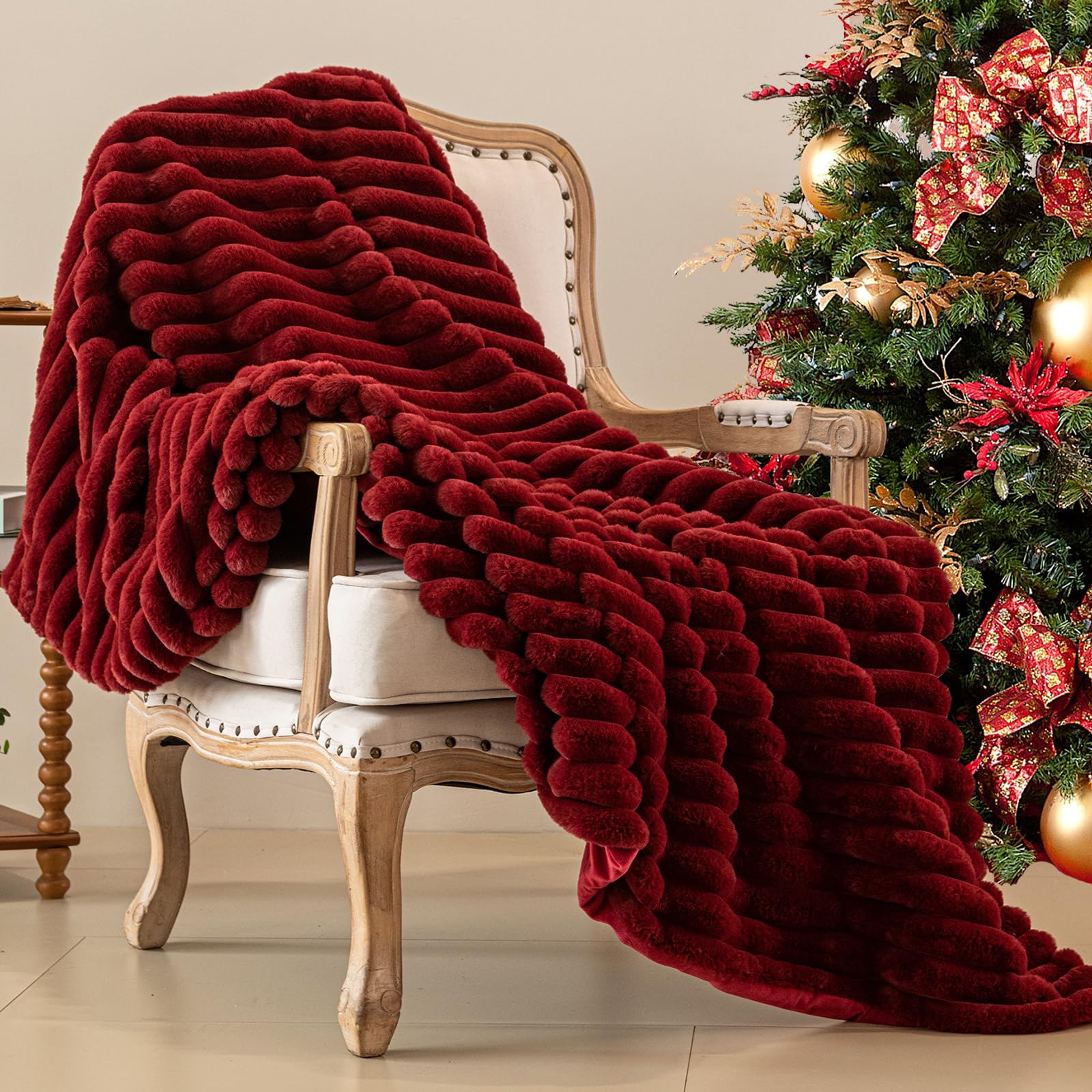 DANSICUINI Manta de Forro Polar de Navidad Borgoña para