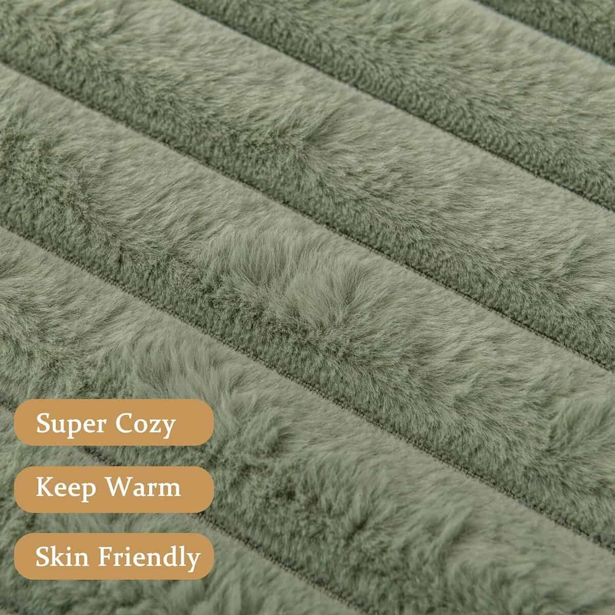 Esta manta de tiro a rayas verde salvia de DANSICUINI está diseñada para proporcionar comodidad y calidez en los días fríos. Hecha con piel sintética esponjosa en el lado exterior y terciopelo sedoso en el interior, esta manta es suave al tacto y se siente acogedora. Con un diseño a rayas elegante, esta manta no solo es funcional sino también una hermosa pieza decorativa para cualquier habitación. Su sensación mullida y aspecto lujoso la convierten en una declaración de estilo en tu dormitorio o sala de estar. Disponible en 2 tamaños, 50×60 pulgadas y 60×80 pulgadas, esta manta de piel sintética es versátil y se adapta a diferentes necesidades. Ya sea para uso personal, como una manta doble en la cama, para colocar sobre el sofá, cama o silla, esta manta esponjosa es una elección práctica y elegante. También es un regalo ideal para tu pareja, padres y amigos, brindando un espacio suave y acogedor para relajarse durante el invierno. Además, esta manta de piel sintética es fácil de limpiar, ya que se puede lavar a máquina en frío con un ciclo suave y secar a baja temperatura. Asegúrate de limpiar la manta antes de usarla por primera vez para una experiencia óptima.