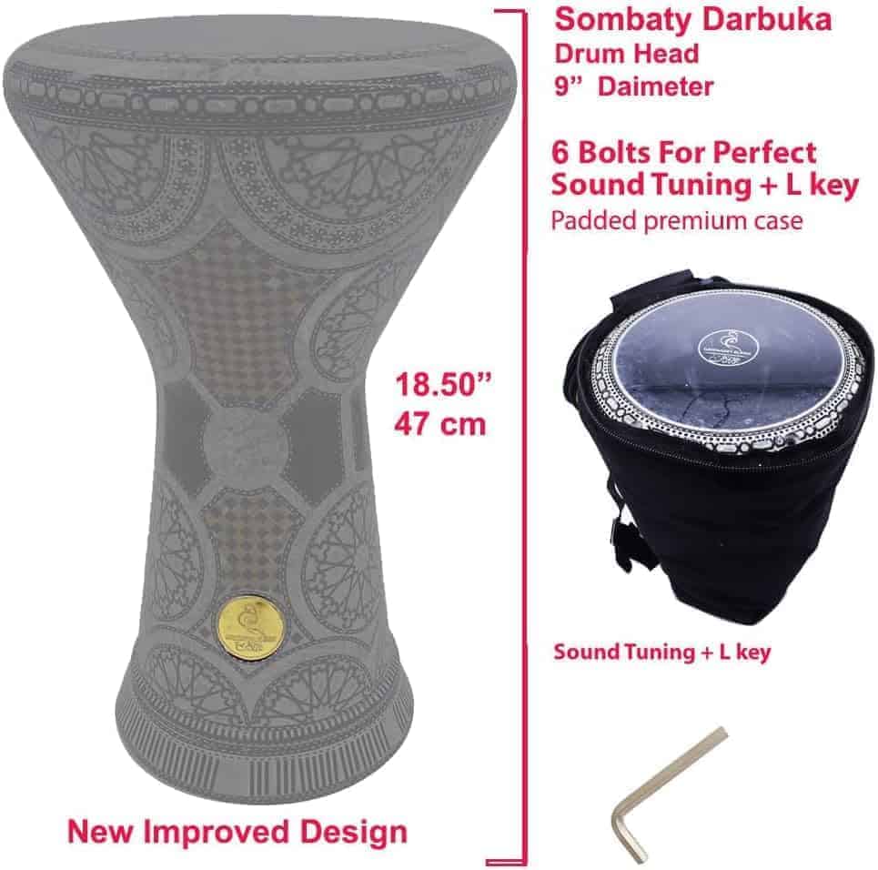 Darbuka Doumbek Drum Sombaty Tamaño 18.5″ Gawharet El Fan