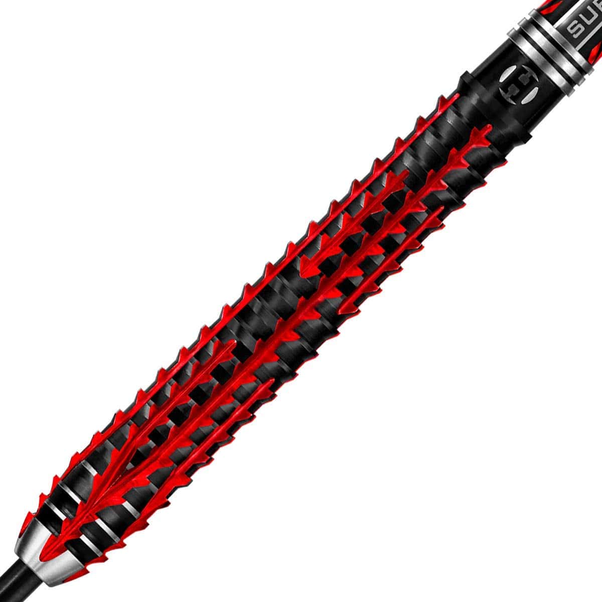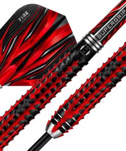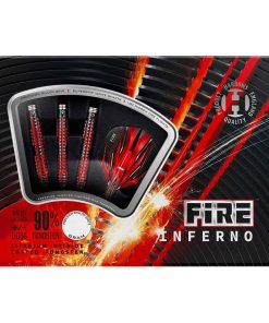 Diseñados y desarrollados utilizando nuestras máquinas CNC líderes en la industria, Fire Inferno ha sido meticulosamente fabricado utilizando los mejores materiales y técnicas más avanzadas disponibles. Tungsteno inyectado de la mejor calidad al 90%. Efecto de fuego, fresado bilateral combinado con cortes de anillo reverso para lograr su secuencia de agarre única. Barril con punta delantera cónica. Acabado con revestimientos duros de nitruro de titanio negro y rojo metálico vivo. Los dardos Fire Inferno se suministran con nuevos tallos Supergrip Ignite rojos, impresionantes plumas de fuego de 100 micrones y están pesados a juego +/- 0.05g.