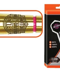 Dardos de punta suave Harley-Davidson Evo, 69673. Barriles de latón de 18 gramos con diseño de logotipo grabado láser Bar & Shield. Agarre estriado. Presenta un logotipo rosa Bar & Shield en los vuelos. Incluye 3 dardos de punta suave con 6 vuelos y 6 ejes. ¡Los dardos perfectos para tu tablero en casa!