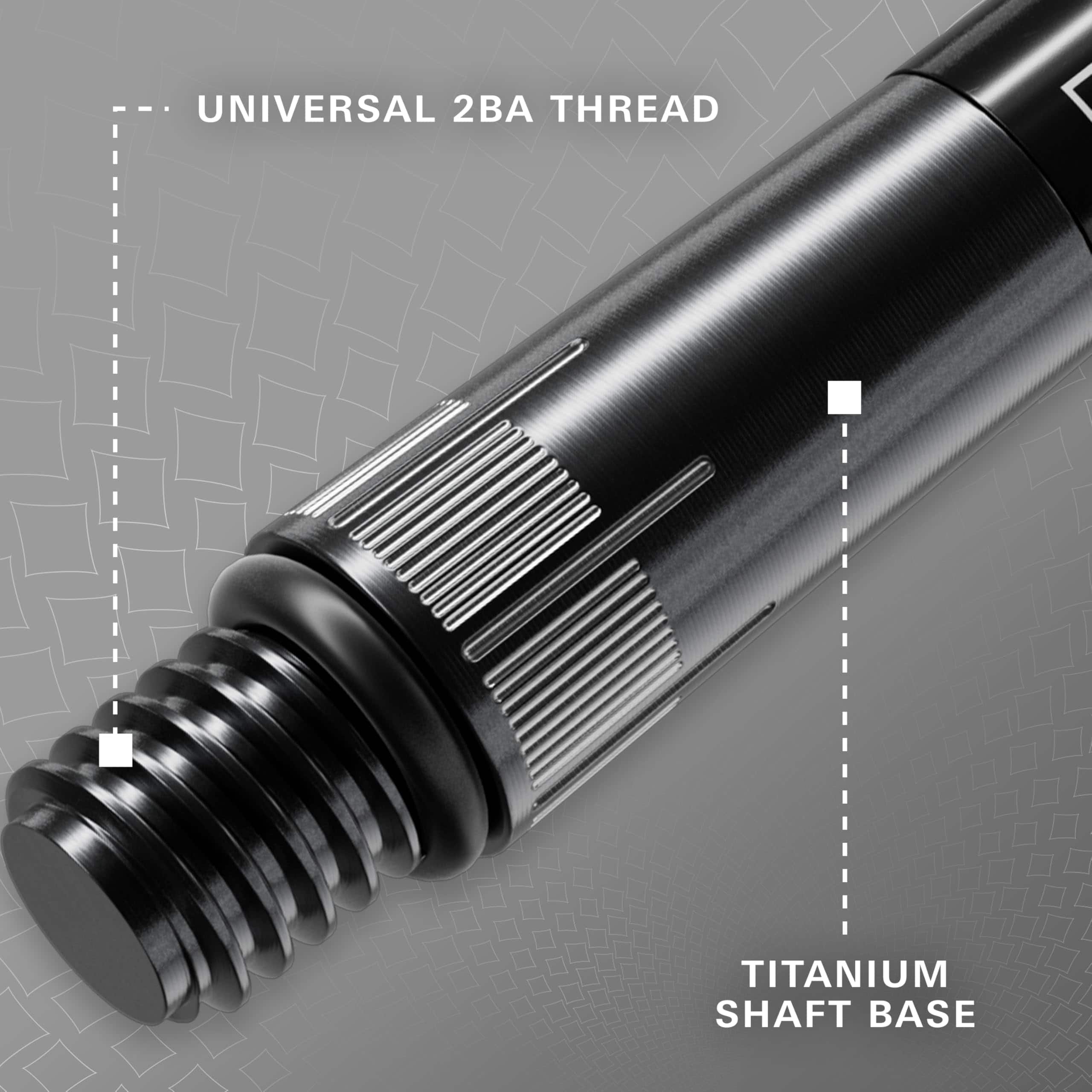 Los ejes Chrono Titanium Pro Grip EVO combinan durabilidad y rendimiento en un diseño elegante, consistente en dos elementos distintos: la base de titanio Chrono y la parte superior del eje Pro Grip EVO. Fabricados con un compuesto de nylon de alta calidad, garantizan una resistencia duradera y estabilidad durante el juego. Los ejes incorporan una útil púa en las astas de los ejes que facilita la inserción de los vuelos para tus juegos de dardos, simplificando tu proceso de configuración, y anillos O de agarre Pro Grip, para mejorar el agarre del vuelo. Con una rosca 2BA moldeada con precisión, los ejes Chrono ofrecen diversidad y una rosca universal para una máxima compatibilidad con los barriles de dardos. El paquete contiene 3x Ejes de Dardos Pro Grip EVO Chrono Titanium. Longitudes: Corto (37.7mm), Intermedio (42.7mm) y Medio (47.7mm).