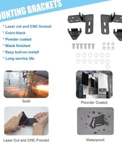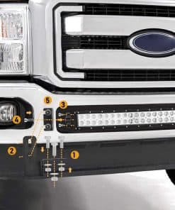Con este kit de soportes, puede instalar una barra de luz de 42″ en su parachoques delantero sin necesidad de cortar los ganchos de remolque.