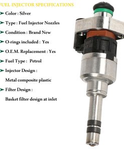 2. Calidad Comparable a OME Tipo de Orificio: 4 Orificios Disco 2 Pines Anillos en O incluidos Tipo de Combustible: Gasolina Diseño del Inyector: Compuesto de metal plástico Filtro de Diseño: Diseño de filtro de cesta en la entrada.