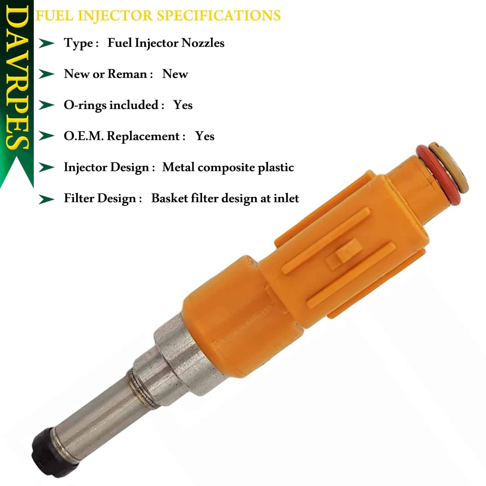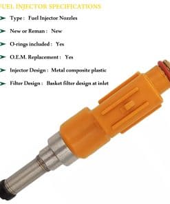 Compatible con modelos de inyectores de combustible 23250-0P100 adecuados para Toyota Avalon 2019-2020 3.5L-V6, Toyota Camry 2018-2020 3.5L-V6, Toyota Highlander 2016-2020 3.5L-V6, Toyota Sienna 2016-2020 3.5L-V6, Toyota Tacoma 2015-2020 3.5L-V6, Lexus ES350 2019-2020 3.5L-V6, Lexus RX350 2016-2020 3.5L-V6, Lexus RX450h 2016-2020 3.5L-V6. Calidad comparable a OEM: Tipo de orificio: Disco 12 Orificios 2 Pines. Incluye juntas tóricas. Tipo de combustible: Gasolina. Diseño del inyector: Metal compuesto plástico. Diseño del filtro: Diseño de filtro de canasta en la entrada. Garantía de 2 años. Eficiente, ahorro de combustible y protección del medio ambiente. Maximizando la potencia y resolviendo fallas. Número de pieza de reemplazo: 23250-0P100, 23209-09330, 23209-39325, 2320931130, 232500P100, 23209-09330, 23209-31130, 2320909330, FJ1405, 23209-09330, 2320939325. Garantía de servicio postventa. Piezas de automoción de mercado secundario 100% profesionales. Si hay algún problema dentro de los 2 años posteriores a la venta del producto, o si tiene alguna pregunta sobre nuestros productos, no dude en contactarnos. Un especialista en servicio al cliente profesional que siempre está en línea para ayudarlo a resolver sus preguntas y proteger su experiencia de compra de la marca DAVRPES de la Tienda de Piezas de Automóviles Gebang.
