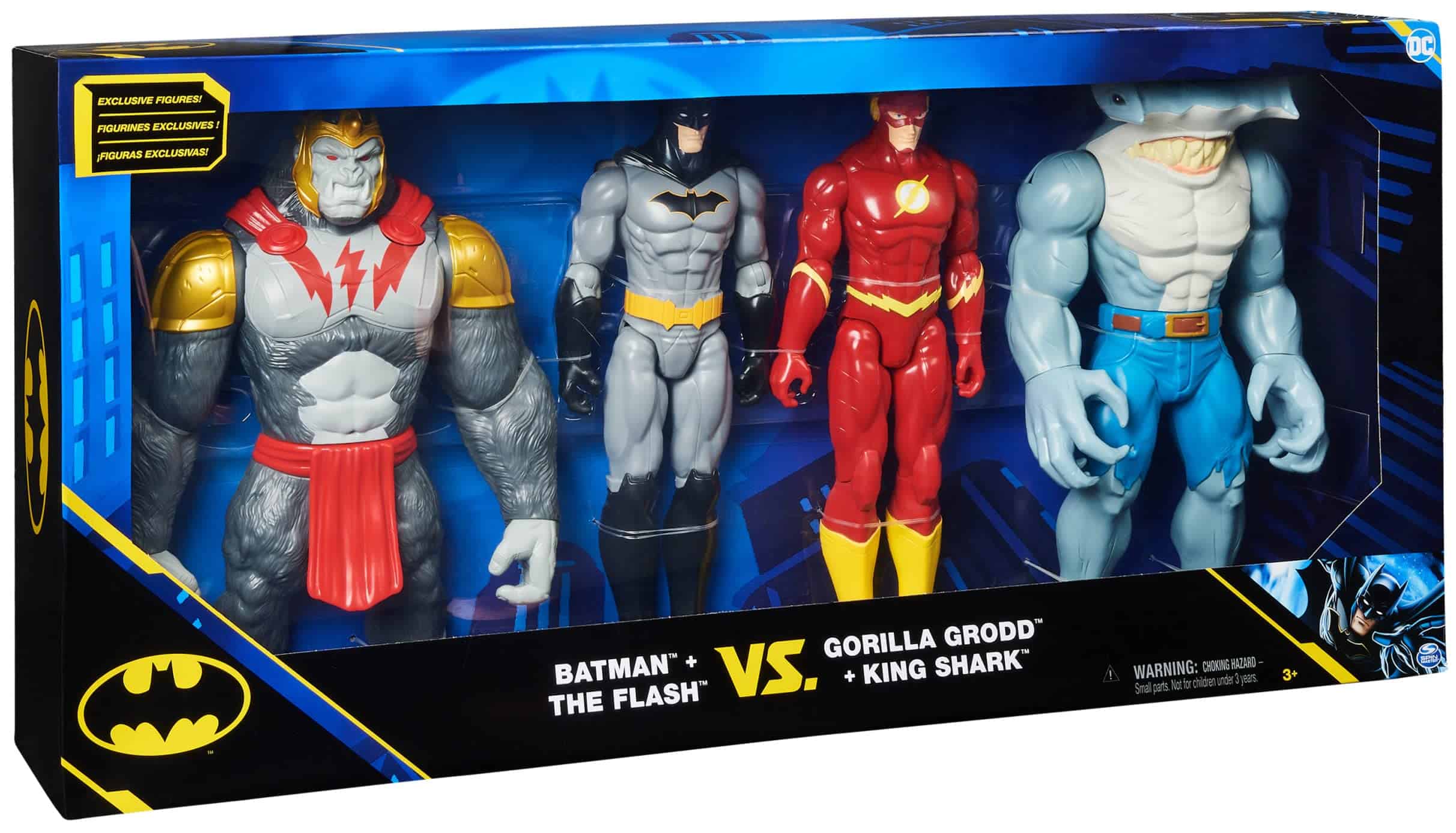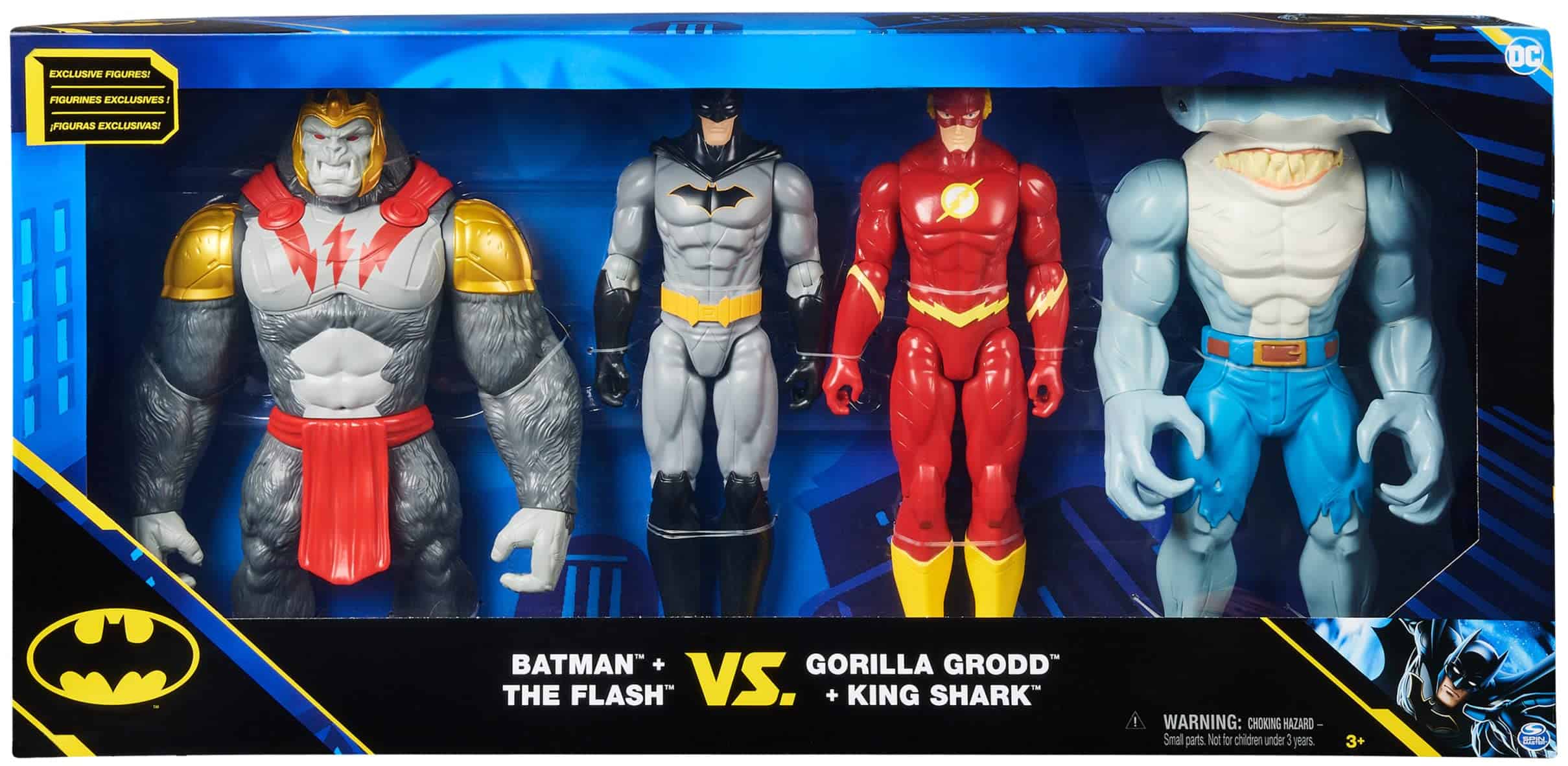 1. BATMAN 4-PACK: El paquete Batman y The Flash vs Gorilla Grodd y King Shark presenta a Batman, The Flash, un King Shark exclusivo y un Gorilla Grodd exclusivo que no podrás encontrar en ningún otro lugar.