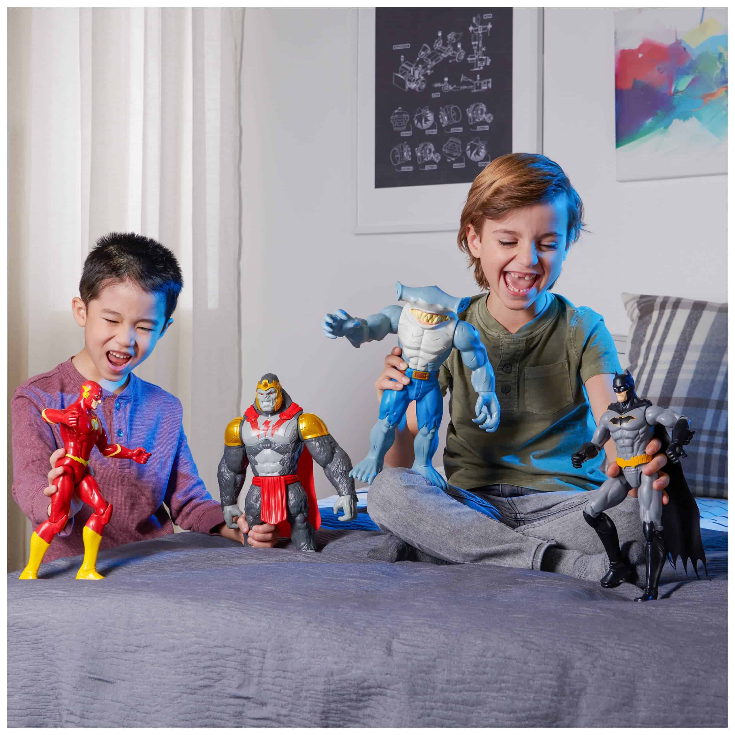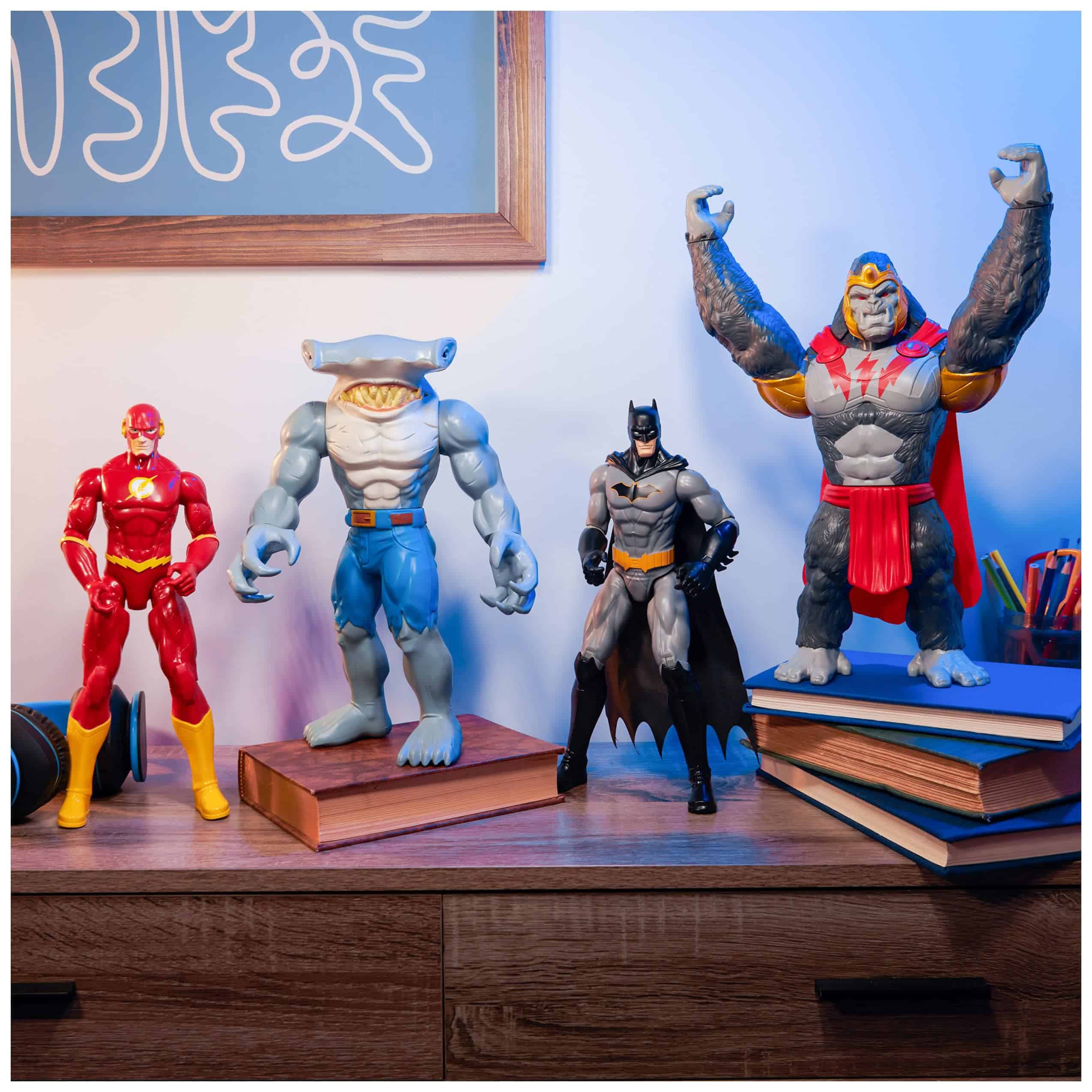 DC Comics, Batman vs. Gorilla Grodd 4-Pack, Figuras de Acción de 30-cm (Batman, The Flash, Gorilla Grodd, King Shark), Juguetes para Niños y Niñas de 3 años en adelante. Este paquete especial presenta a los personajes de Batman y The Flash luchando contra sus rivales Gorilla Grodd y King Shark. Cada figura tiene 30-cm de altura y viene con 11 puntos de articulación para generar poses dinámicas. Además, las figuras tienen un estilo auténtico de cómics que hará las delicias de los fans de Batman. Colecta todas las figuras de acción de Batman para crear tu propia colección en casa. ¡Un regalo perfecto para niños y niñas que aman los superhéroes y las aventuras de Batman!