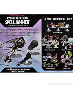 D&D ICONS OF THE REALMS: ESCALA DE NAVES – EMBOSCADA EN EL ESPACIO SALVAJE – El 24° set en nuestra línea de miniaturas pre-pintadas de Dungeons & Dragons. ¡Este emocionante nuevo set incluye 4 figuras utilizando una escala de naves totalmente nueva de 1:600! ¡Hay muchas pruebas, tribulaciones y enemigos traicioneros, demonios y obstáculos en el espacio! ¡Esta es solo una muestra de algunos de los muchos problemas que pueden surgir a lo largo de tu nueva aventura! Ya sea un asteroide sin pensamiento en tu camino o una horrorosa nave araña nocturna. ¡Las cosas pueden y saldrán mal! ¡Usa este set perfecto para dar vida a la escena y elevar las apuestas para tus jugadores! Estas miniaturas están a escala 1:600 (.5mm por 1 pie) lo que te permite llevar a cabo encuentros de forma táctica en cualquier cuadrícula estándar de 1 pulgada x 1 pulgada. Este set incluye: Nautiloide, Araña Nocturna, Asteroide 3, Pez Volador.
