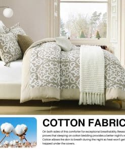 Crafted from 300TC Cotton, this queen comforter offers a luxurious feel with its exceptionally soft texture. It ensures a cozy and comfortable sleep experience. The cotton fabric is known for its breathability, allowing air circulation to keep you cool in warmer temperatures and providing warmth during cooler nights. 3 piece queen comforter set includes a comforter (90 L x 90 W inches) and 2 pillow shams (20 x 26 inches). This comforter is expertly crafted with attention to detail, ensuring a high-quality product that not only looks beautiful but also offers long-lasting comfort and luxury for years to come. Featuring a Botanical Front design on one side and a Solid Reverse on the other, this comforter offers versatility in style. You can change the look of your bedding with a simple flip. This comforter is easy to care. Machine wash separately in cold water. Tumble dry low heat. Do not bleach this comforter sets. It retains its quality wash after wash, ensuring lasting comfort and aesthetic appeal.