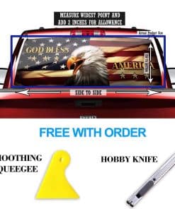 El decal de ventana perforada con bandera americana es una forma simple y única de agregar el toque adecuado a su vehículo. Diseño único para su coche. Muestre su personalidad a donde quiera que vaya. Características: Material – calcomanía de vinilo perforado de alta calidad 50/50 Impresa digitalmente en alta resolución, utilizando tintas solventes de alta calidad que brindan durabilidad a largo plazo y colores vivos. El gráfico se instala en la superficie EXTERIOR de la ventana y se ve a través desde el interior. Las calcomanías para autos son fáciles de aplicar y fáciles de quitar, solo despegue, aplique y corte. 4 Tamaños: 135×35 cm (53″x14″ pulgadas) camiones pequeños 147×46 cm (58″x18″ pulgadas) camiones medianos 165×56 cm (65″x22″ pulgadas) tamaño estándar (se adapta a la mayoría de las ventanas de camiones) 168×70 cm (66″x28″ pulgadas) camiones grandes y SUVs Los tamaños de los gráficos se producen ligeramente más grandes para permitir el recorte después de la instalación. Fácil de recortar. Paquete: Calcomanías de ventana trasera para camiones 1 Escobilla alisadora 1 Cuchillo de hobby 1